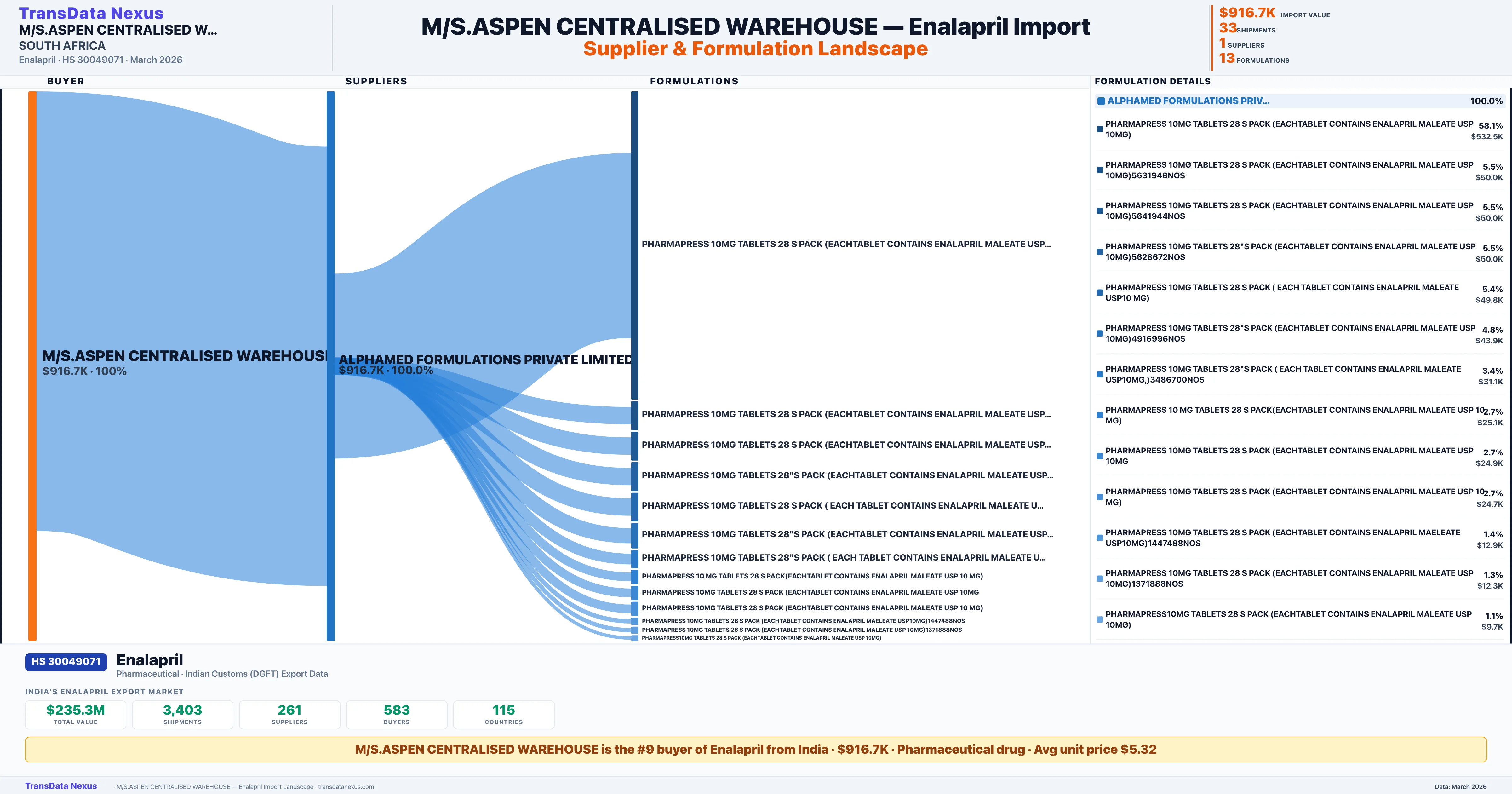 M/S.ASPEN CENTRALISED WAREHOUSE β Enalapril Import Profile: Suppliers, Formulations & Sources