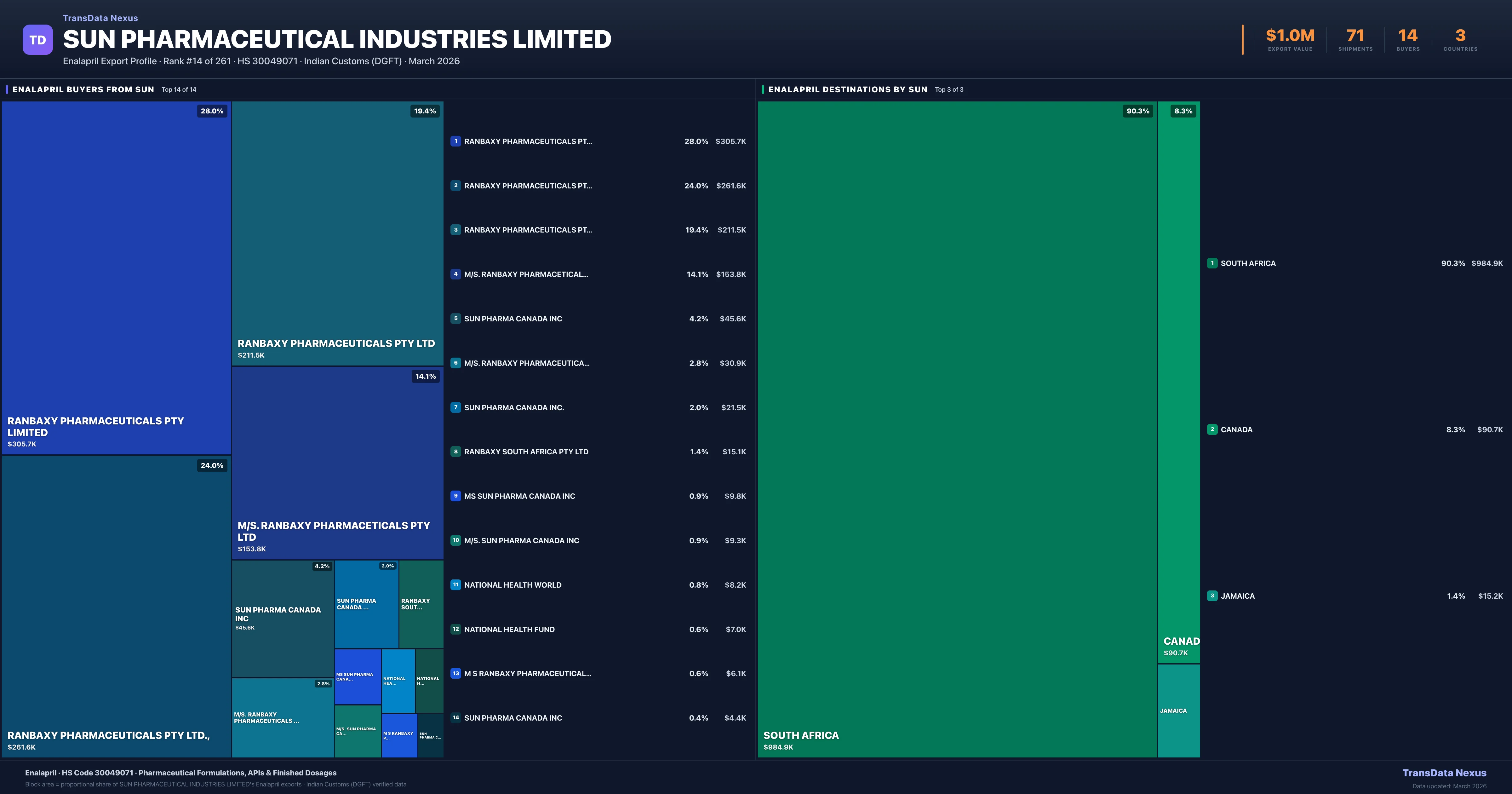SUN Pharmaceutical Industries Limited — Enalapril Export Profile: Buyers & Destinations