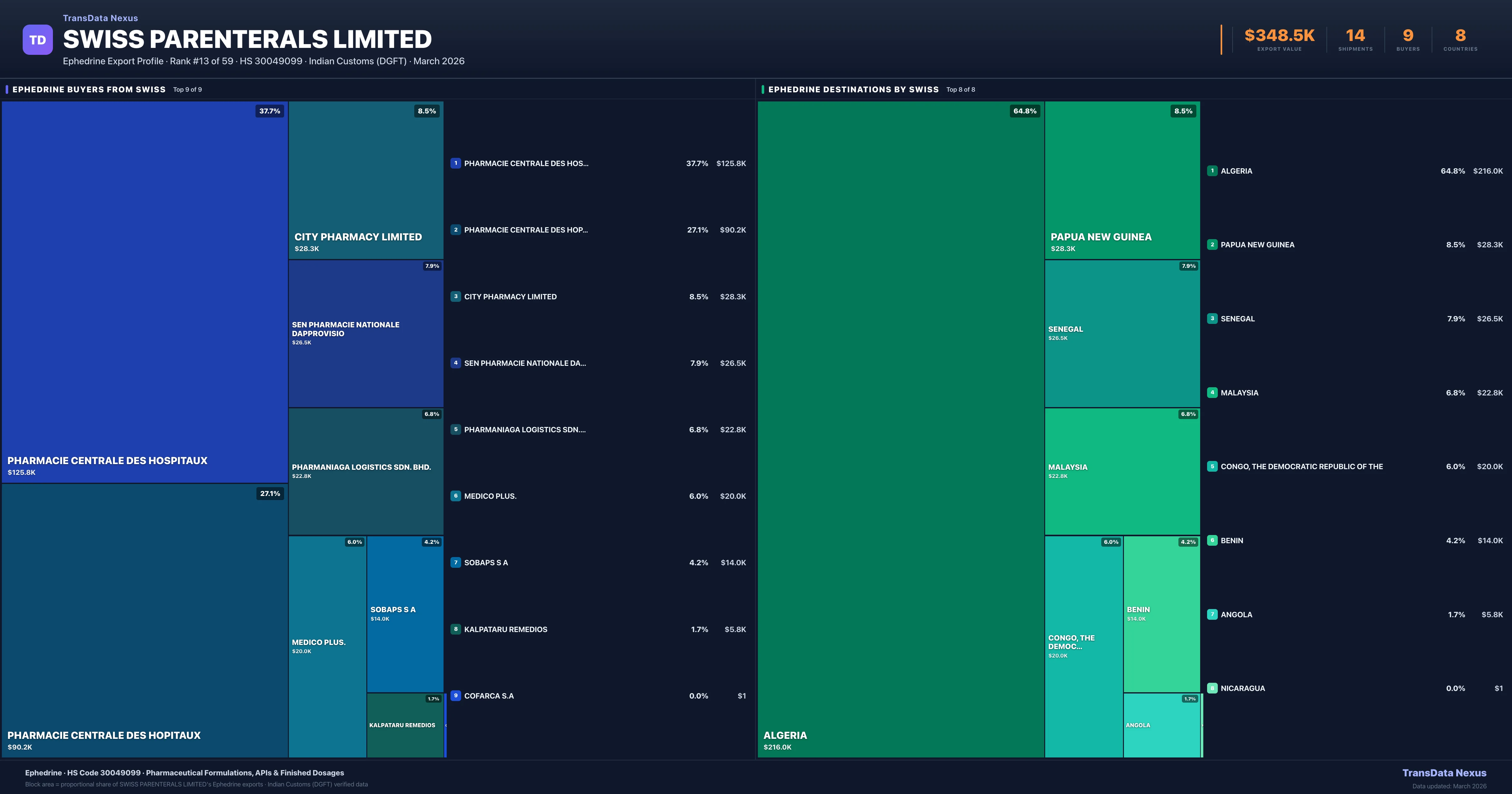 Swiss Parenterals Limited — Ephedrine Export Profile: Buyers & Destinations