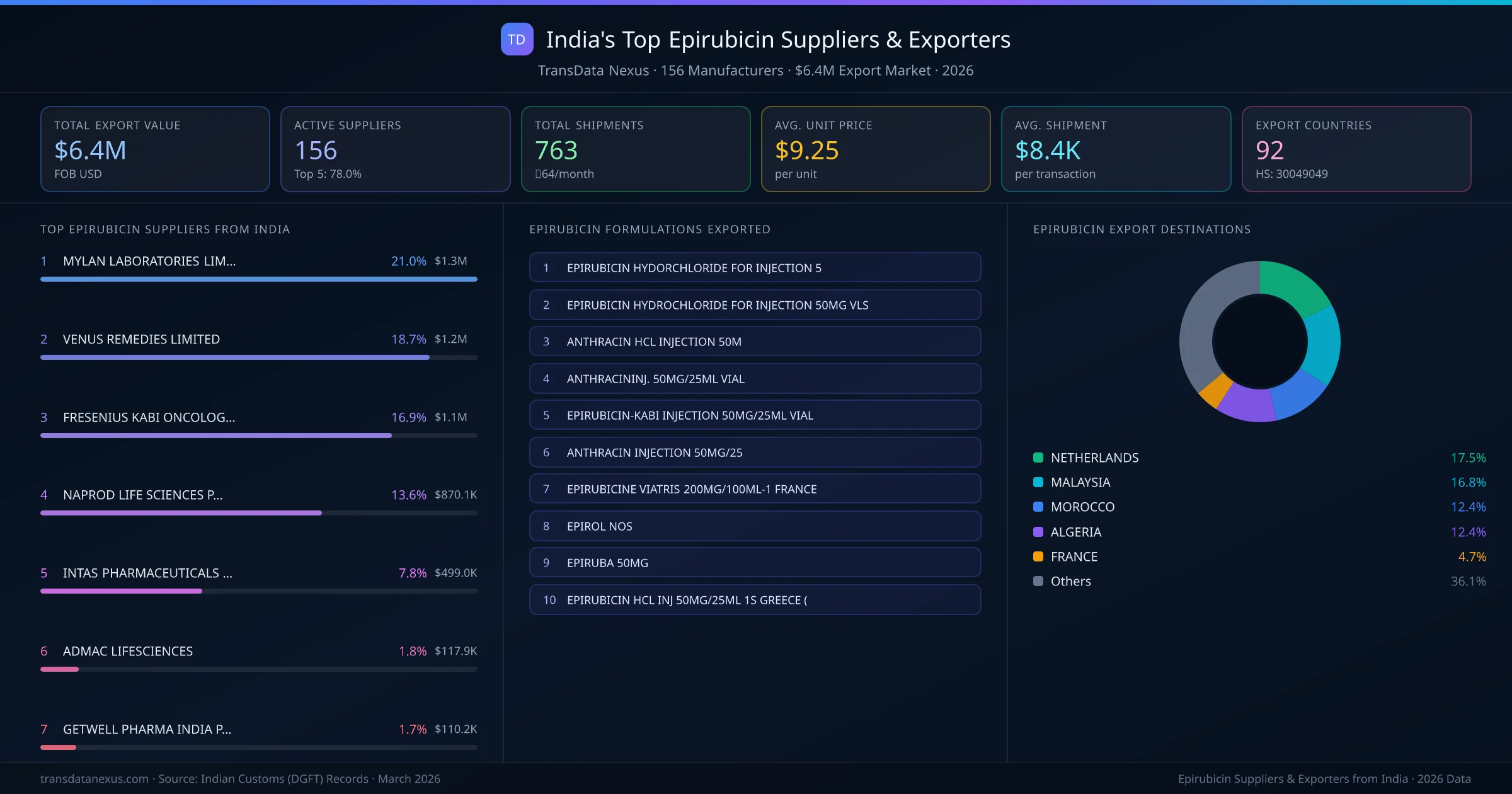Who Exports Epirubicin from India โ 156 Suppliers Behind a $6.4M Market