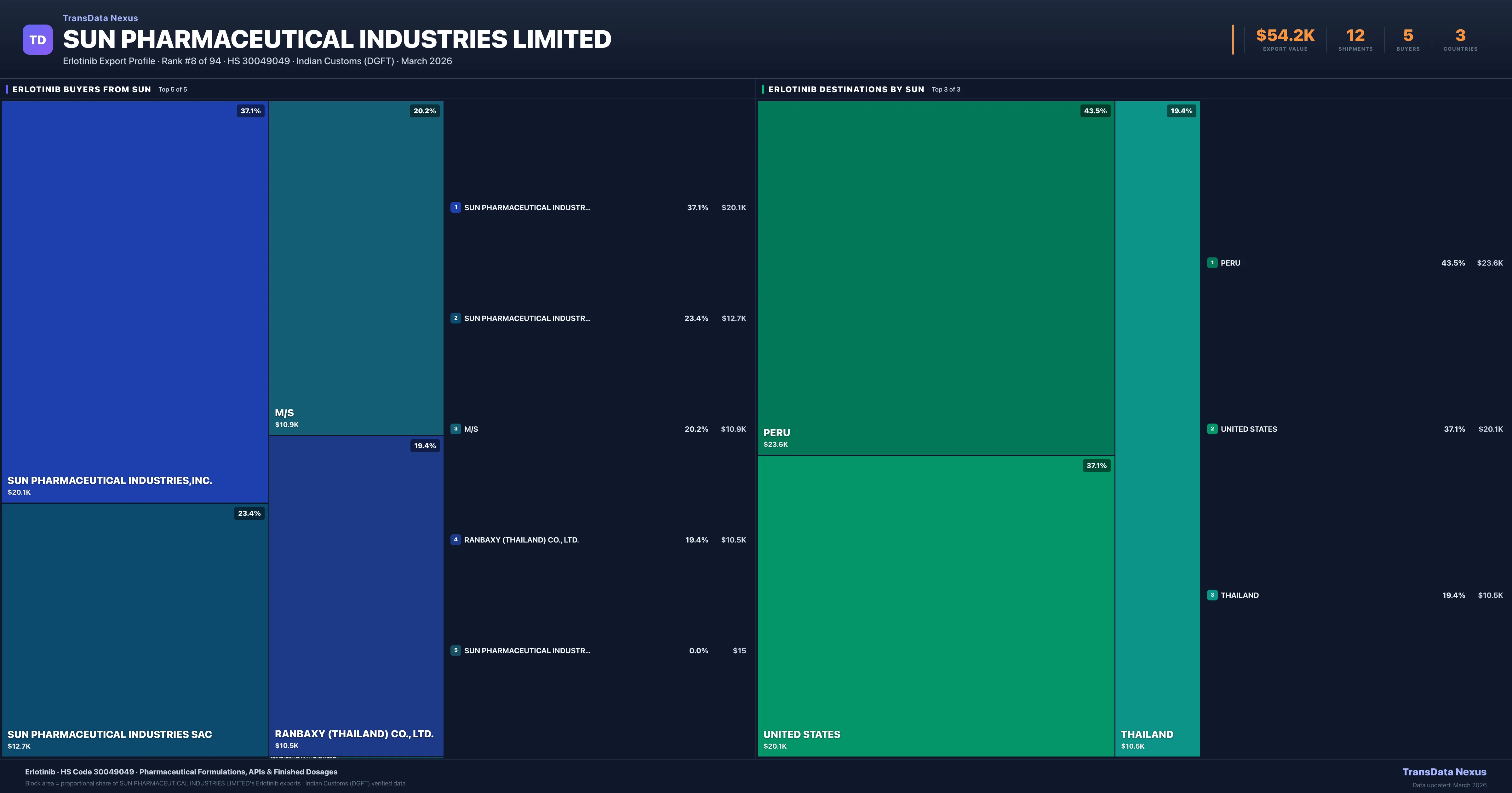 SUN Pharmaceutical Industries Limited — Erlotinib Export Profile: Buyers & Destinations