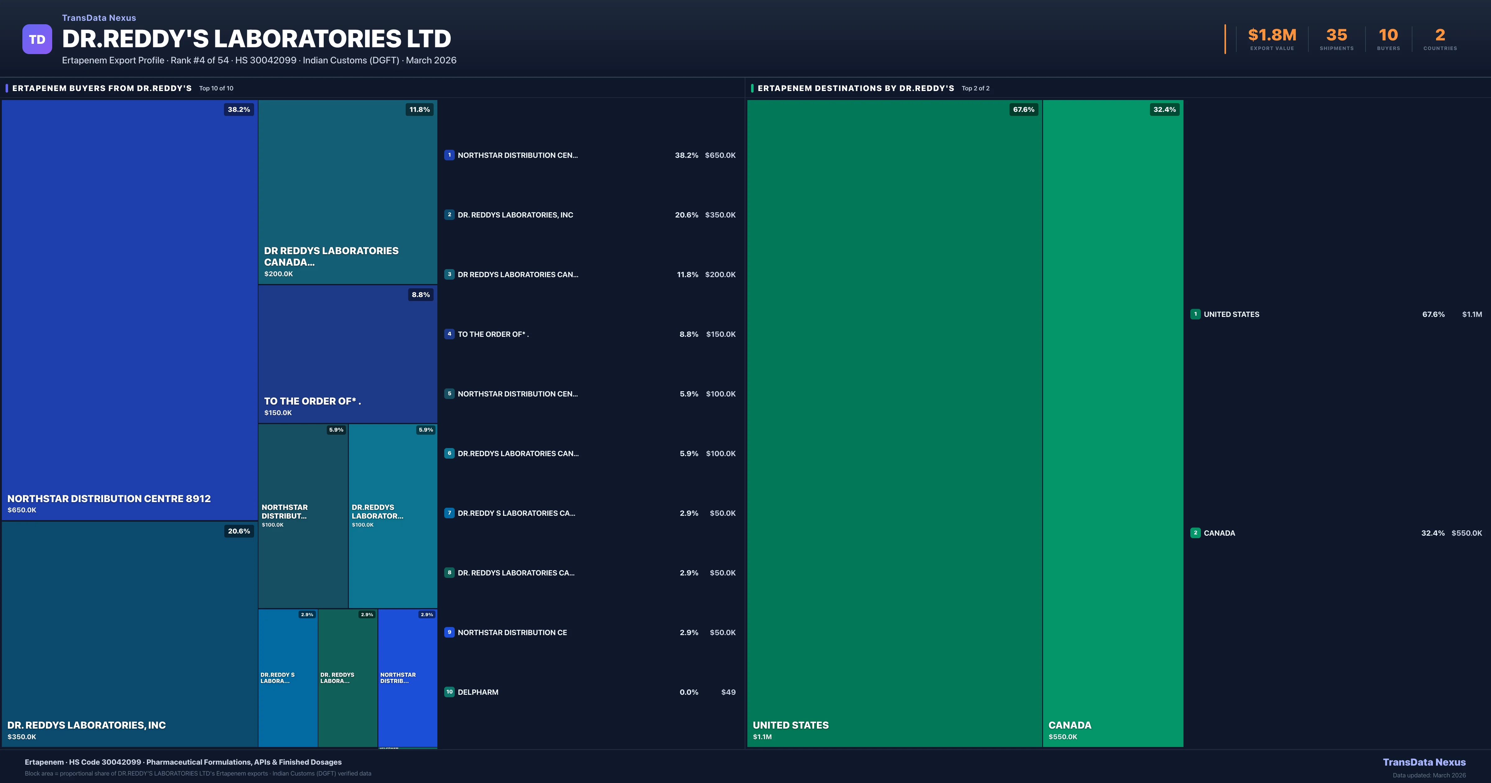 Dr.reddy's Laboratories Ltd — Ertapenem Export Profile: Buyers & Destinations