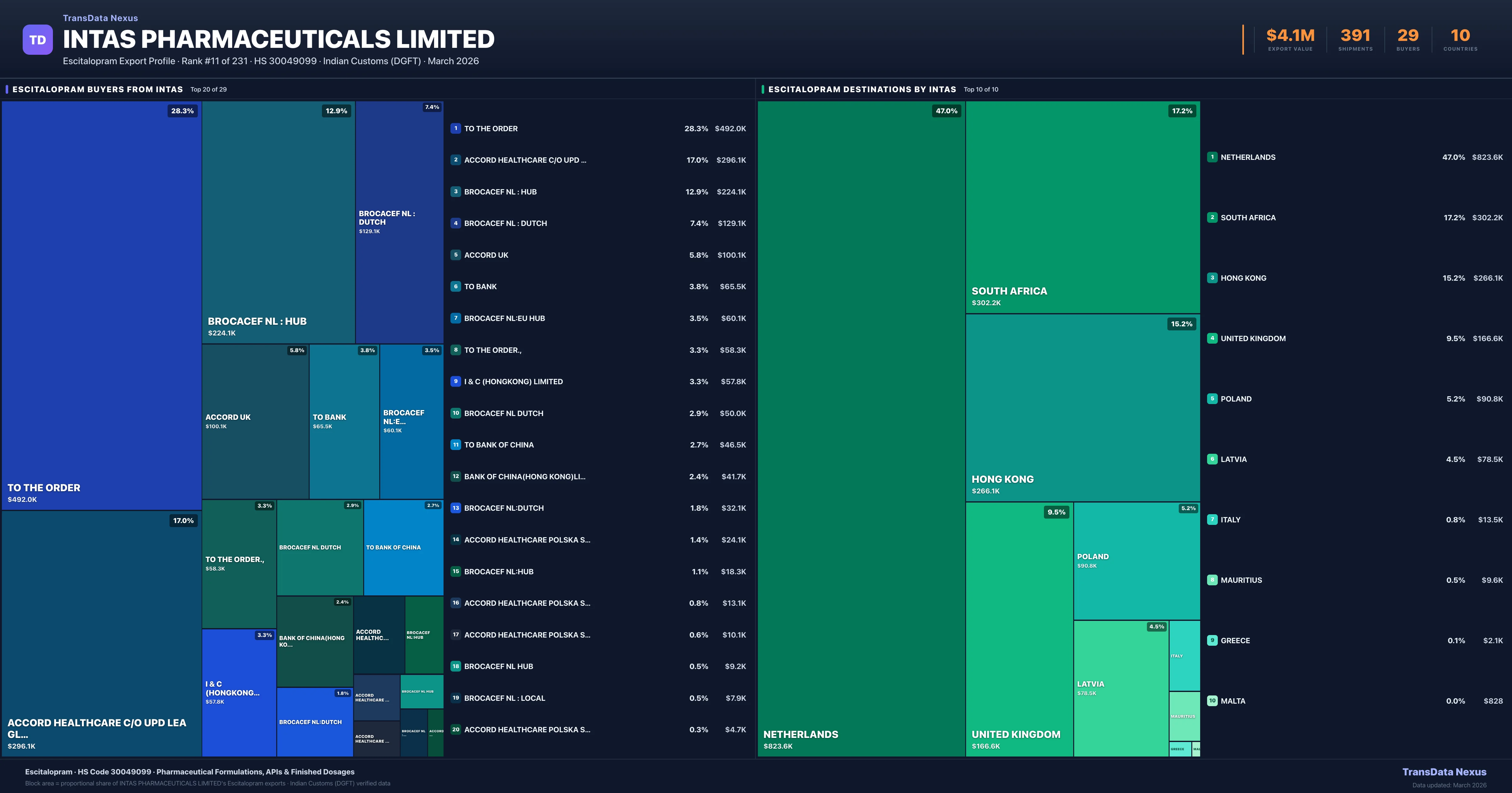 Intas Pharmaceuticals Limited — Escitalopram Export Profile: Buyers & Destinations