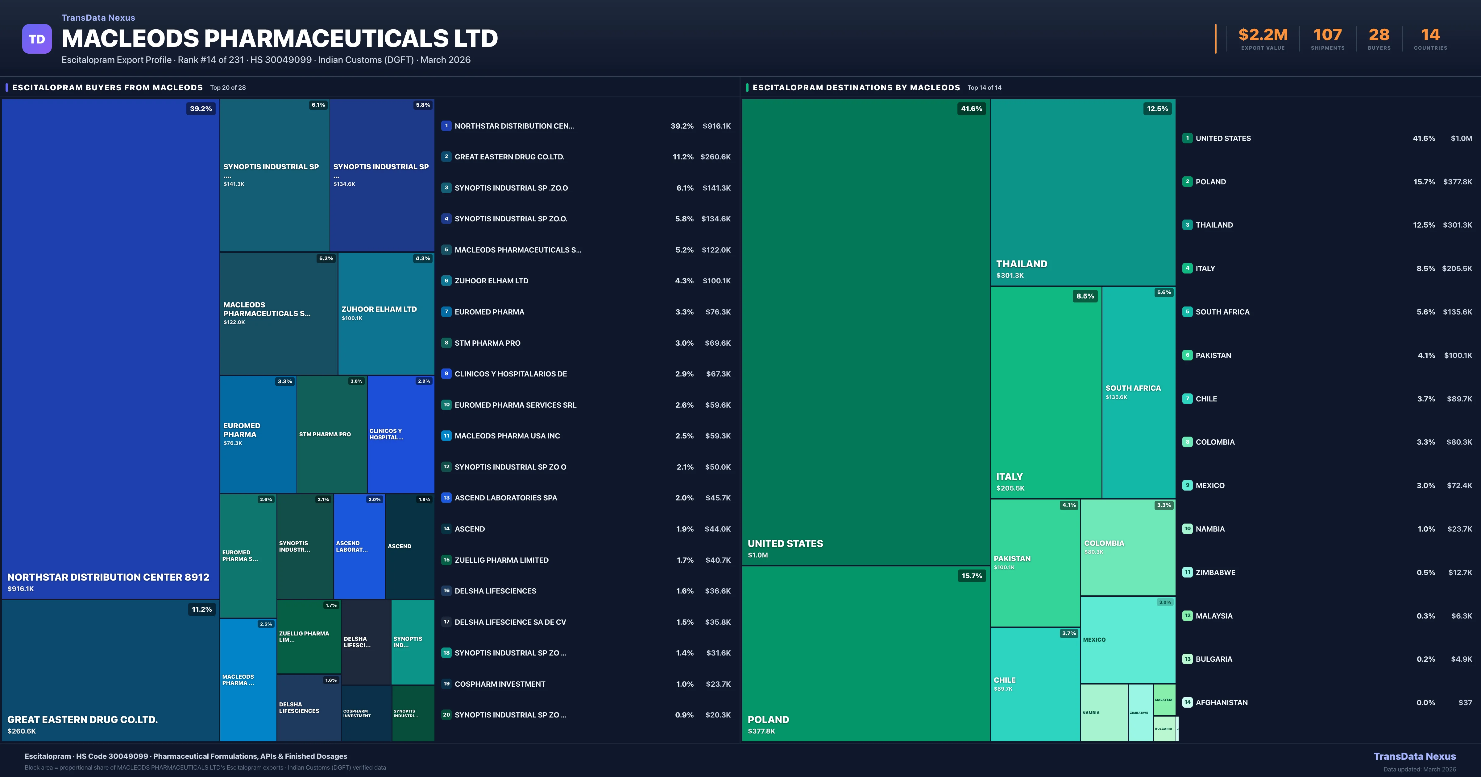 Macleods Pharmaceuticals Ltd — Escitalopram Export Profile: Buyers & Destinations