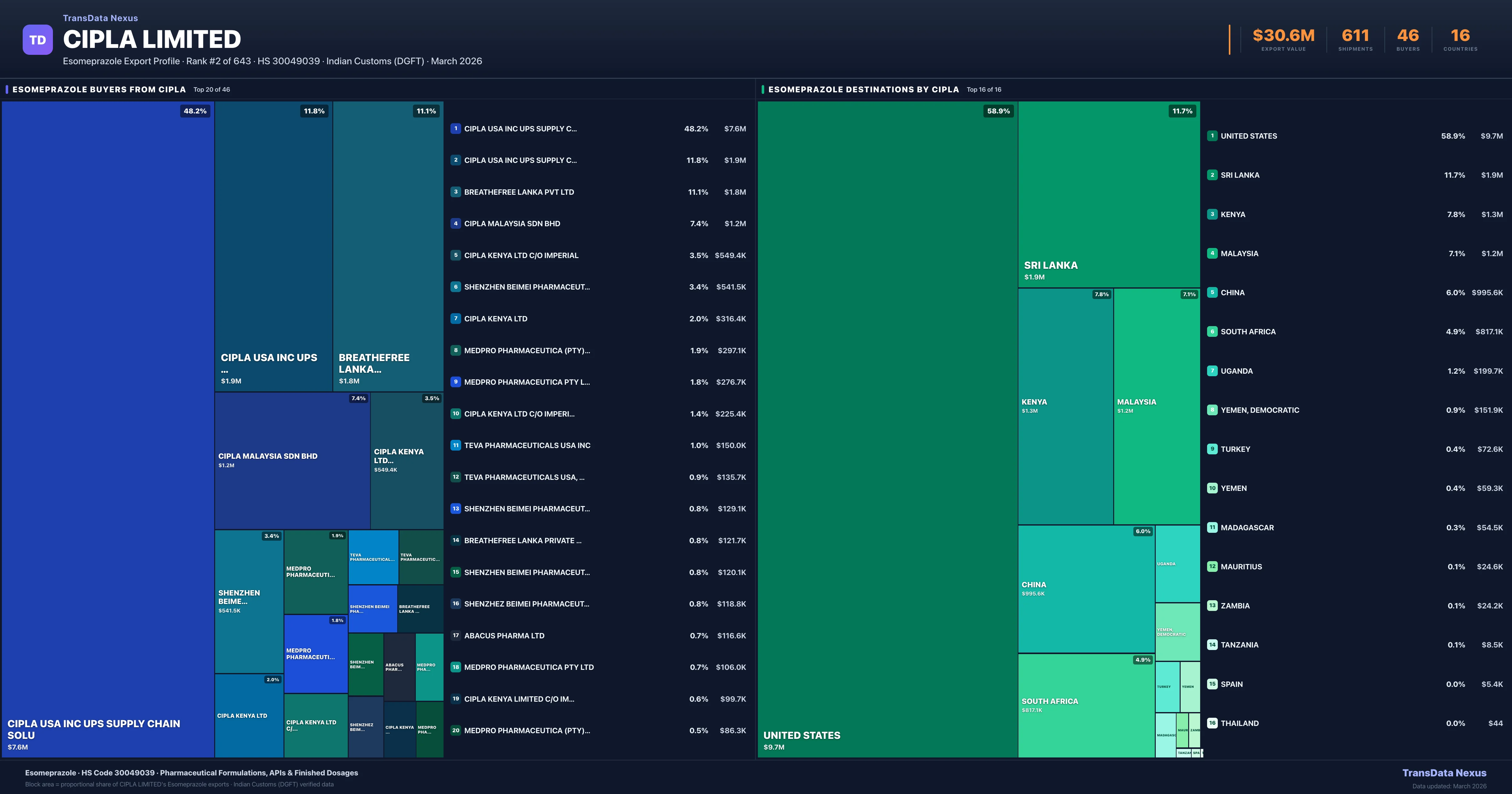 Cipla Limited — Esomeprazole Export Profile: Buyers & Destinations