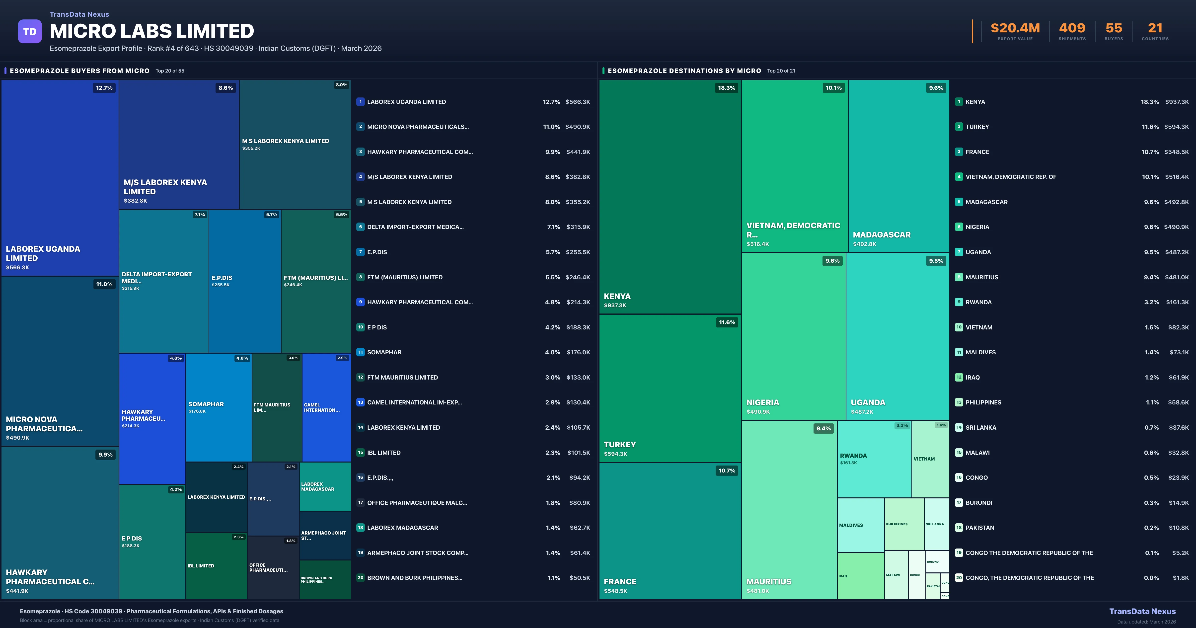 Micro Labs Limited — Esomeprazole Export Profile: Buyers & Destinations