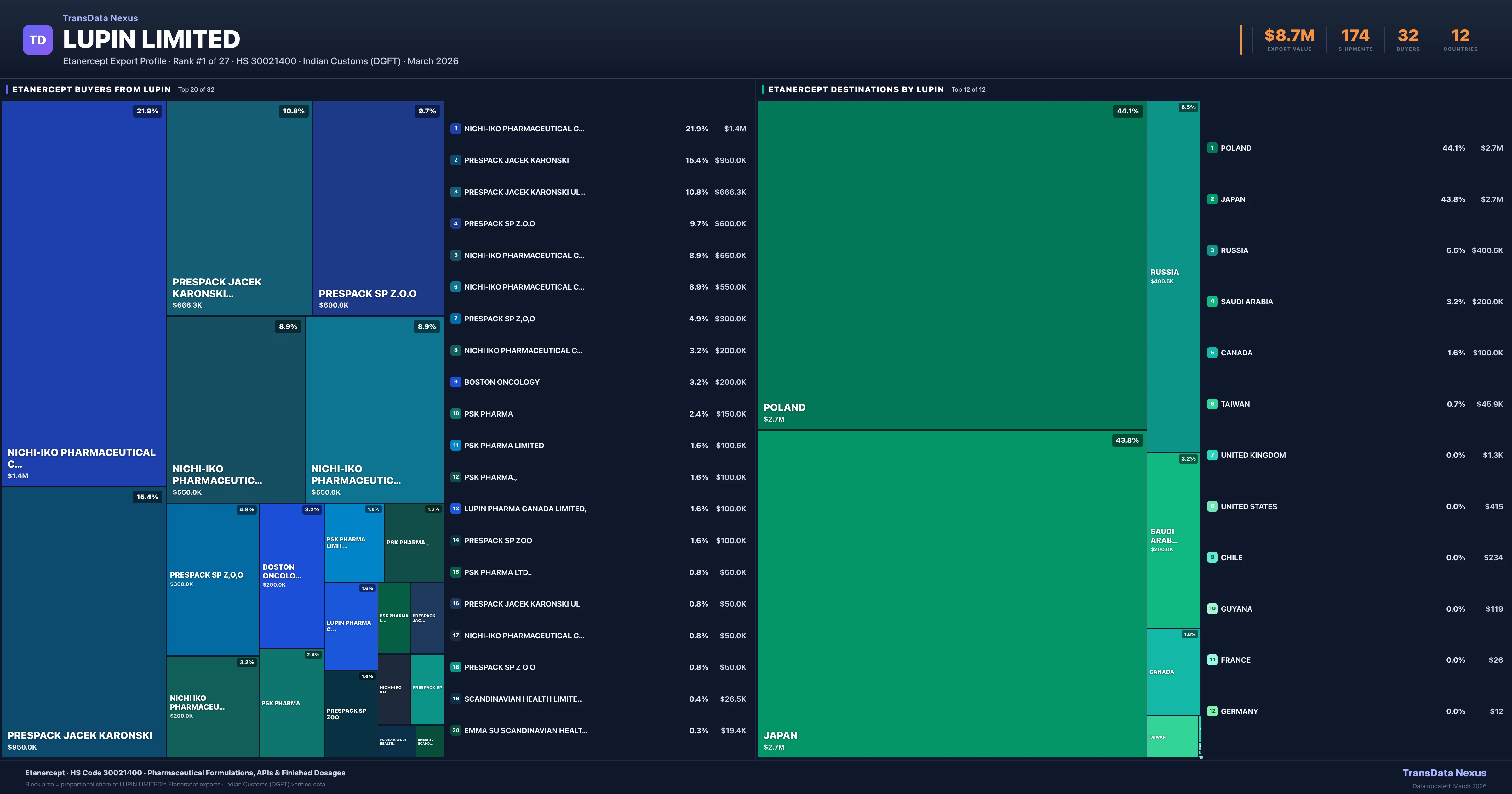 Lupin Limited β Etanercept Export Profile: Buyers & Destinations