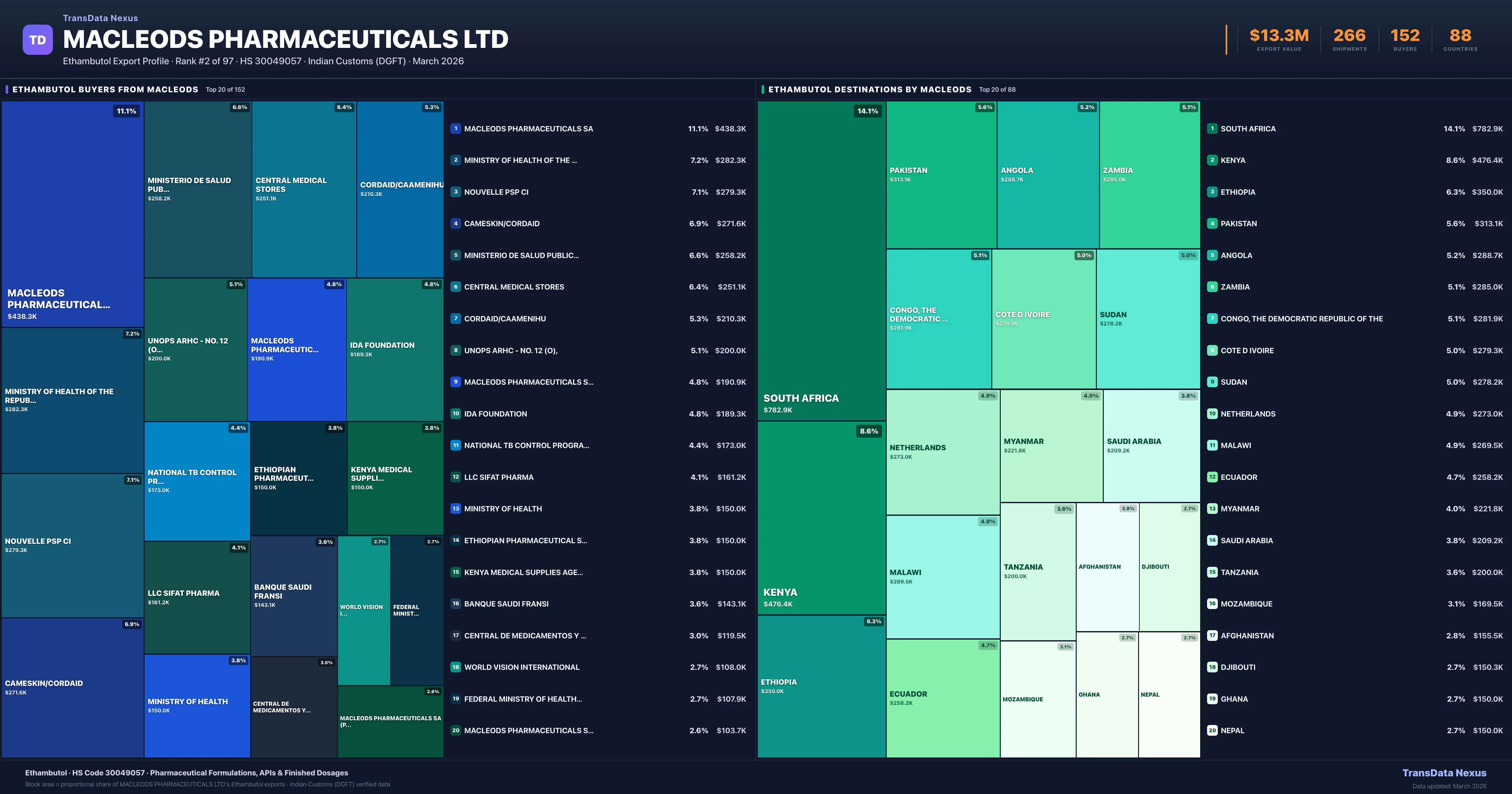 Macleods Pharmaceuticals Ltd — Ethambutol Export Profile: Buyers & Destinations