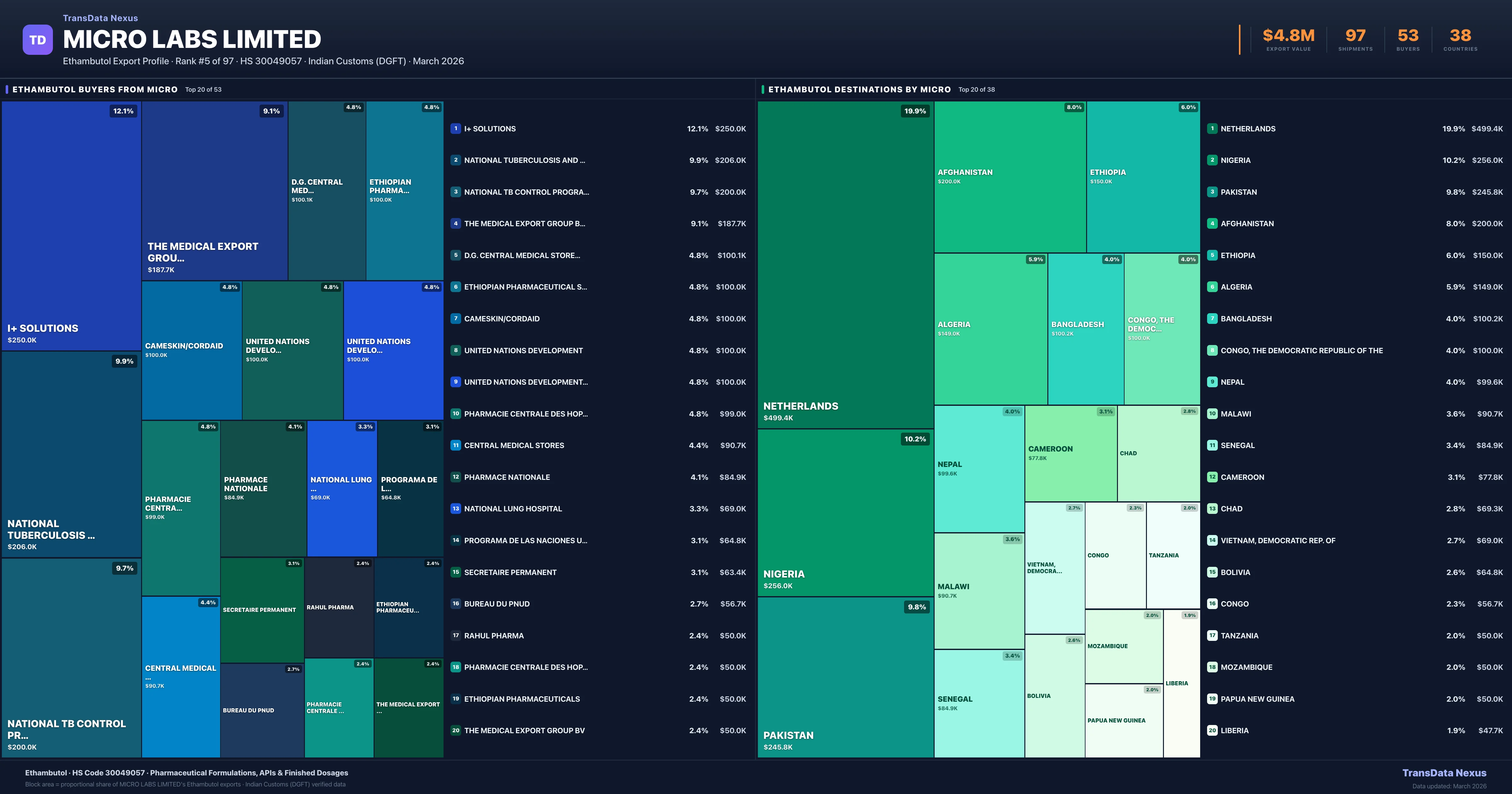 Micro Labs Limited — Ethambutol Export Profile: Buyers & Destinations