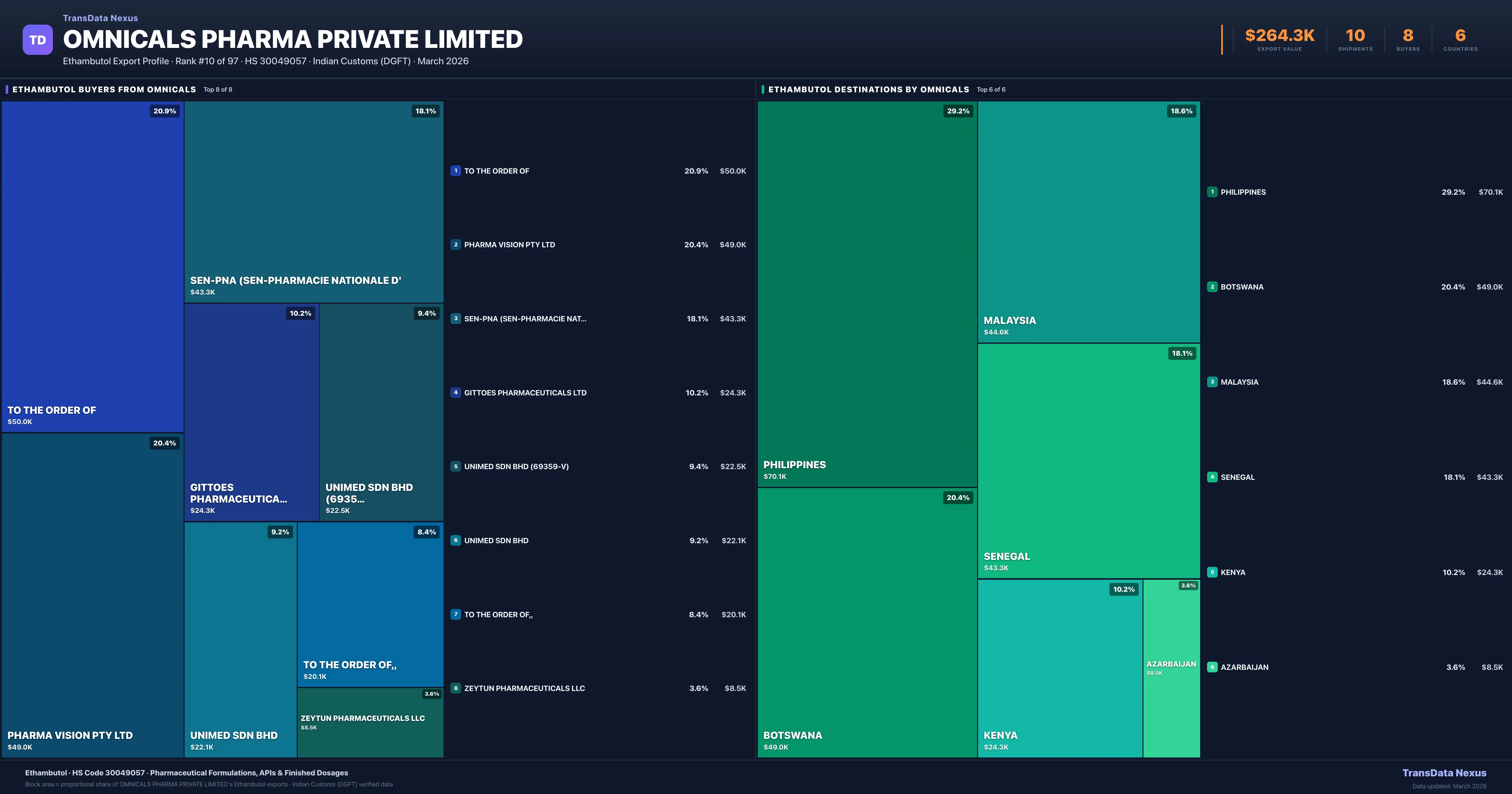Omnicals Pharma Private Limited — Ethambutol Export Profile: Buyers & Destinations