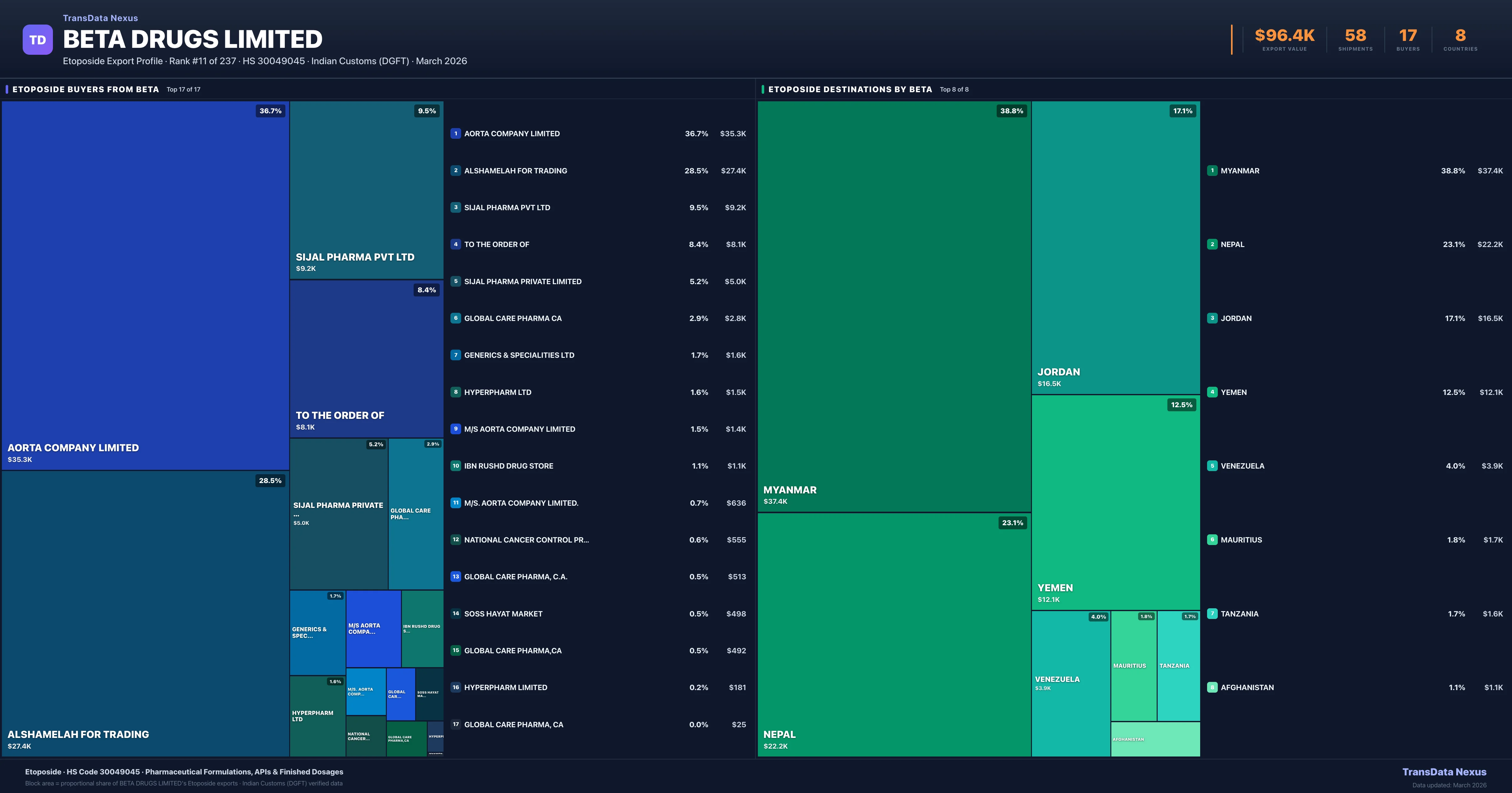 Beta Drugs Limited β Etoposide Export Profile: Buyers & Destinations