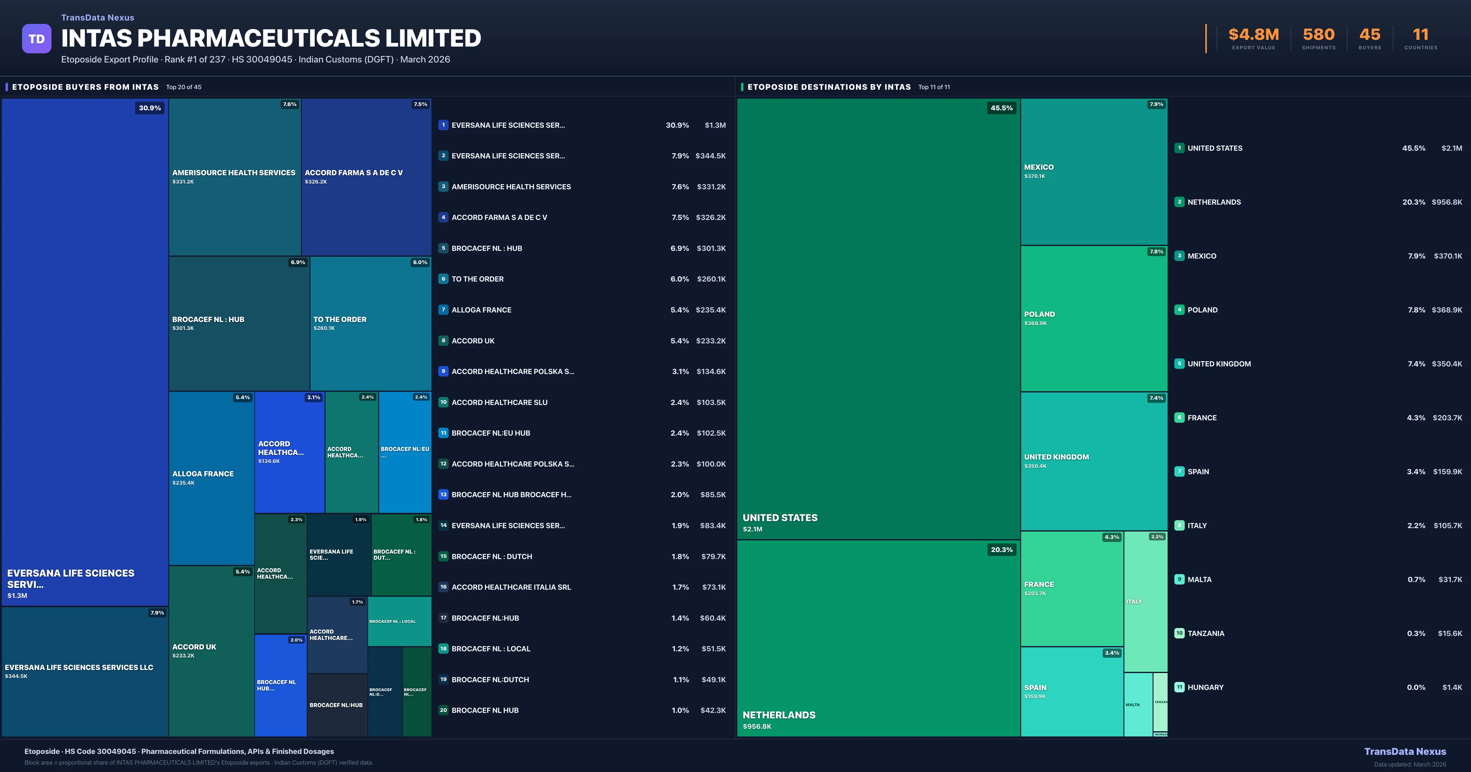 Intas Pharmaceuticals Limited — Etoposide Export Profile: Buyers & Destinations