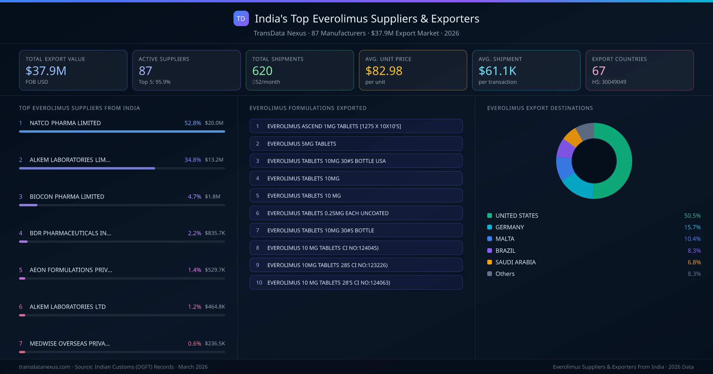 Who Exports Everolimus from India โ 87 Suppliers Behind a $37.9M Market