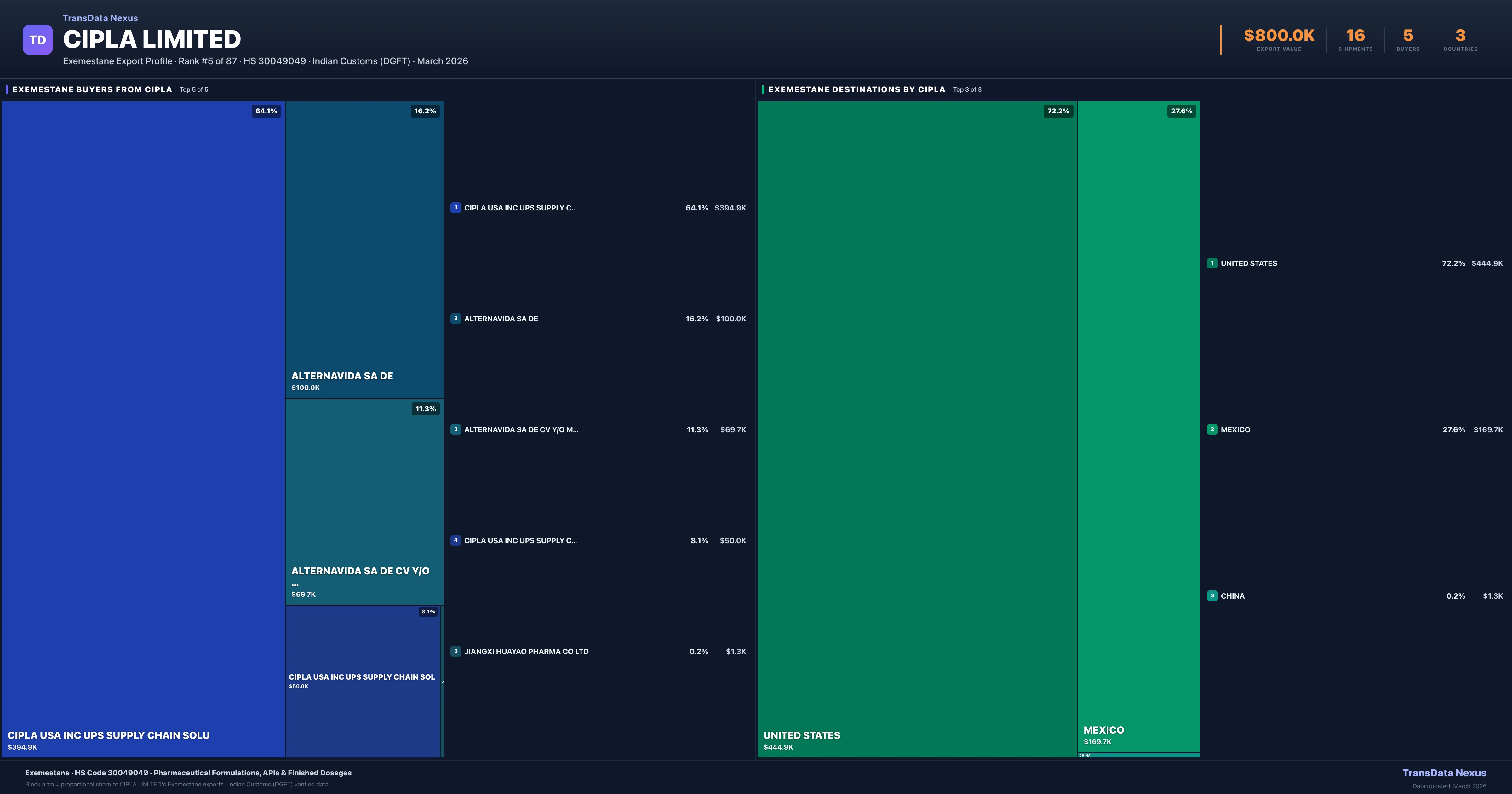 Cipla Limited — Exemestane Export Profile: Buyers & Destinations