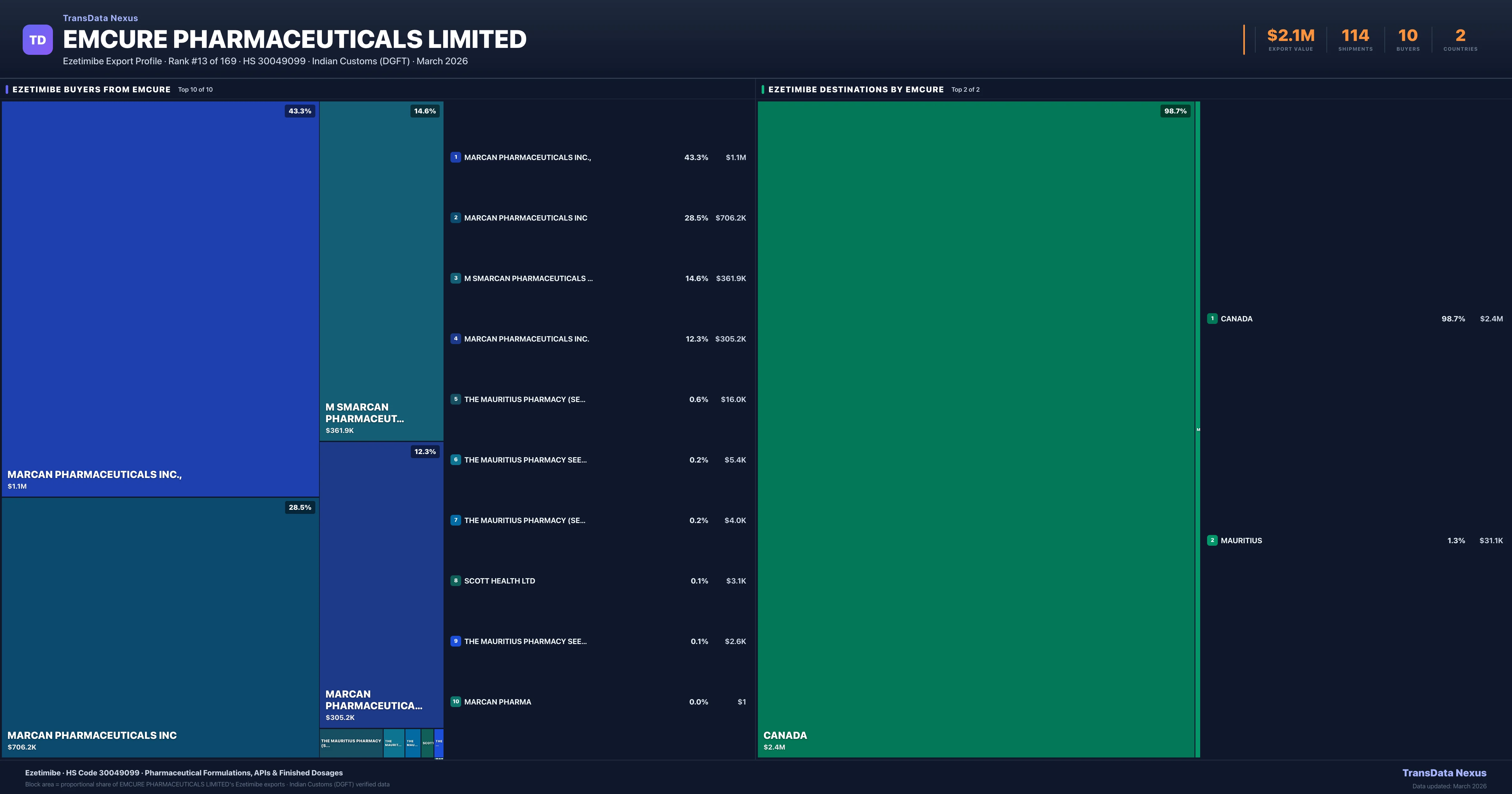Emcure Pharmaceuticals Limited — Ezetimibe Export Profile: Buyers & Destinations
