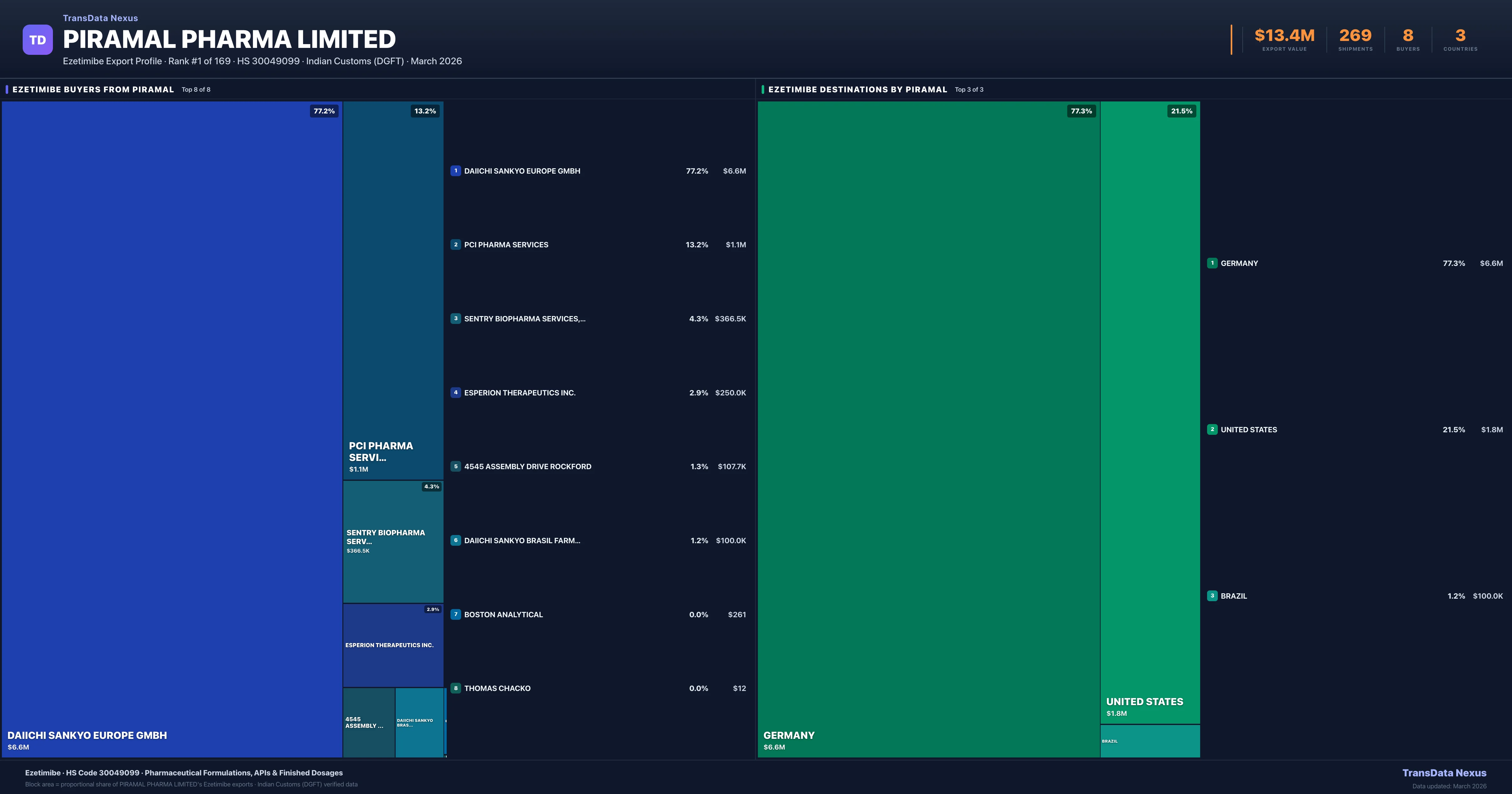 Piramal Pharma Limited — Ezetimibe Export Profile: Buyers & Destinations