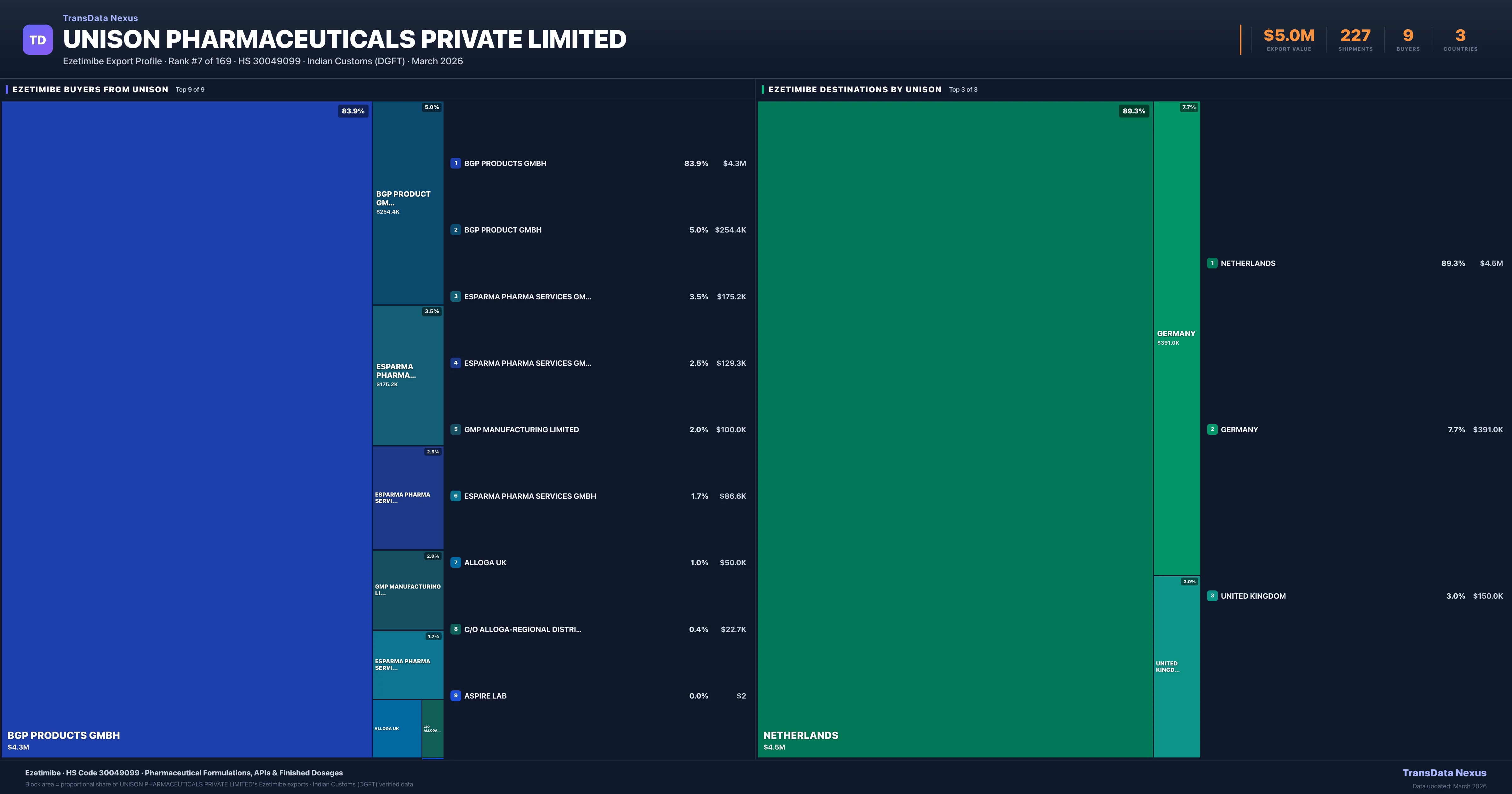 Unison Pharmaceuticals Private Limited — Ezetimibe Export Profile: Buyers & Destinations