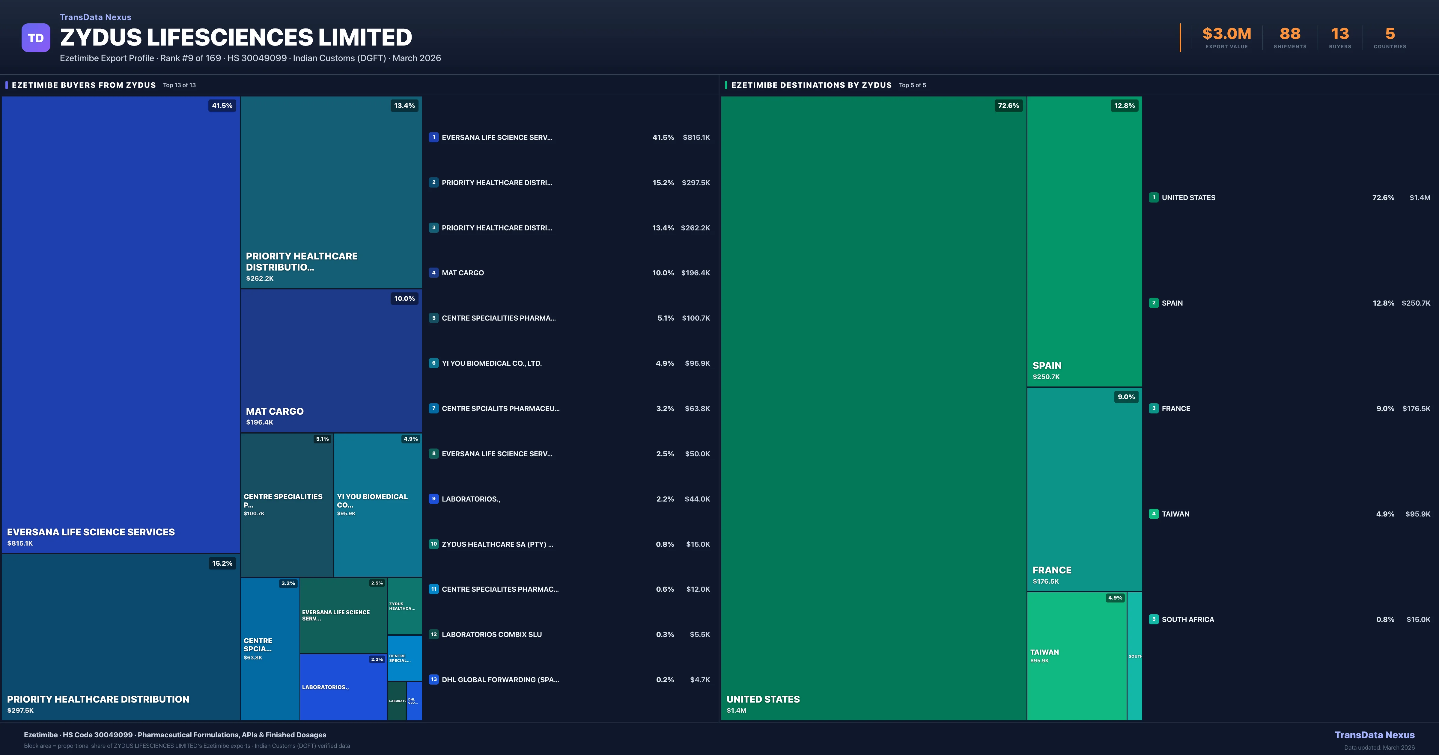 Zydus Lifesciences Limited — Ezetimibe Export Profile: Buyers & Destinations