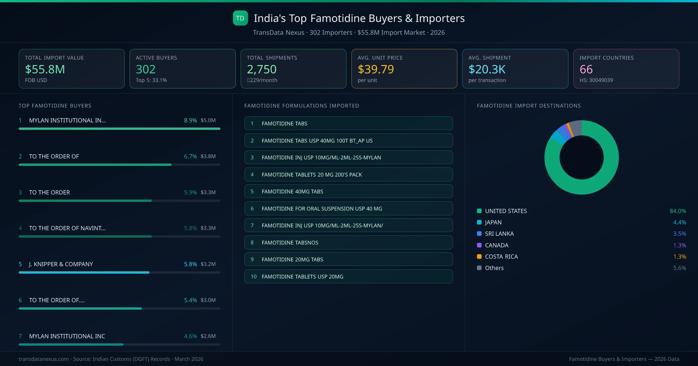 Who Buys Famotidine from India — 302 Importers Behind a $55.8M Market