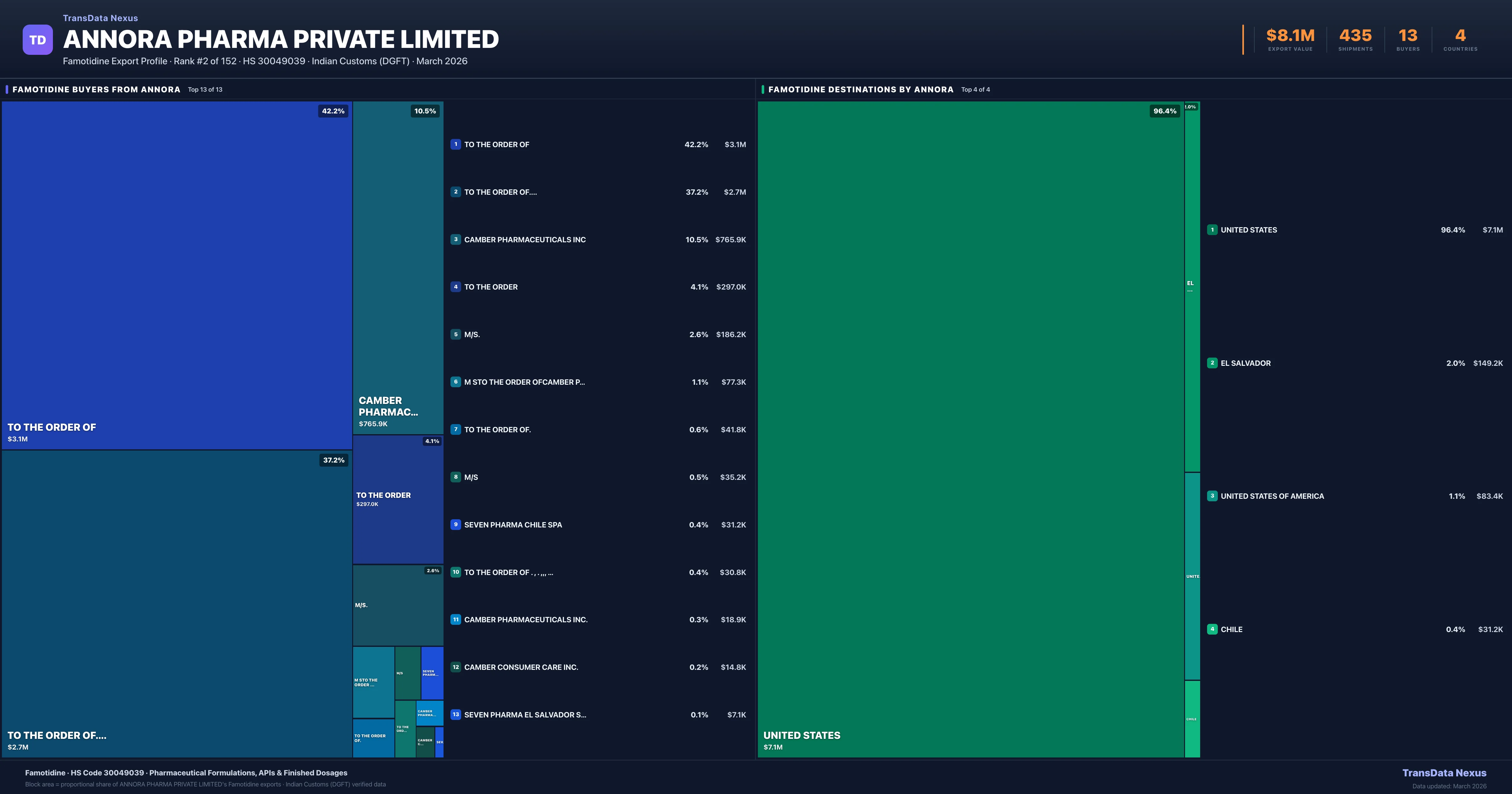 Annora Pharma Private Limited — Famotidine Export Profile: Buyers & Destinations