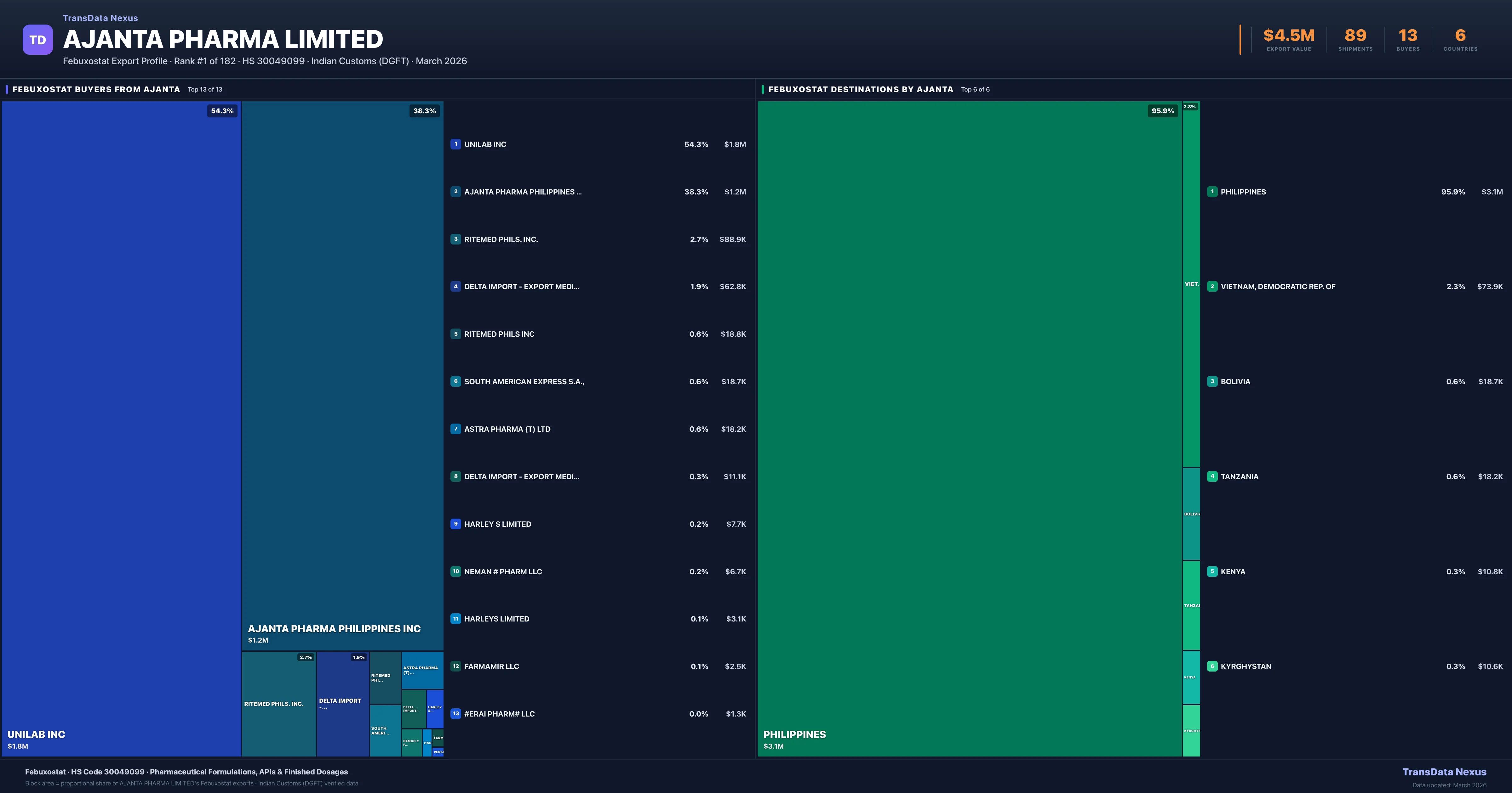 Ajanta Pharma Limited — Febuxostat Export Profile: Buyers & Destinations