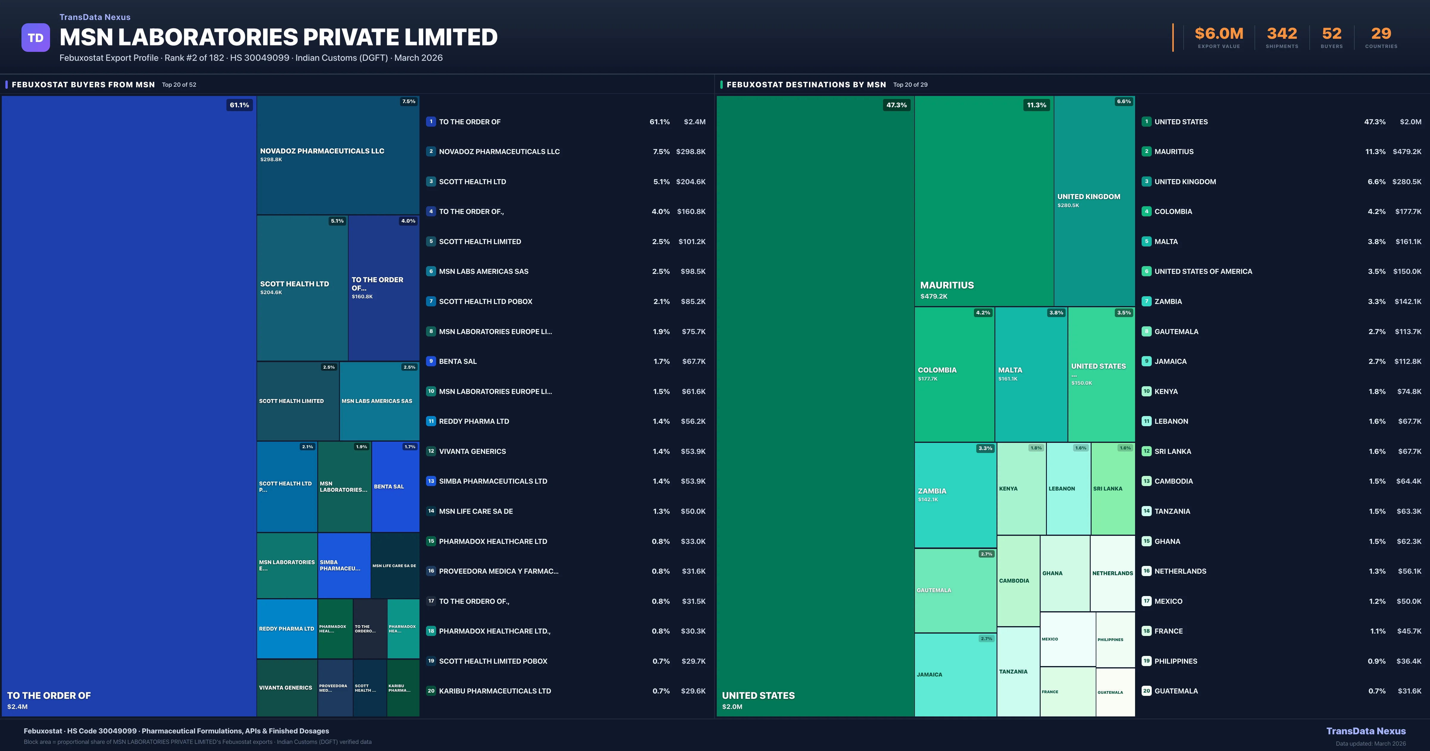 MSN Laboratories Private Limited — Febuxostat Export Profile: Buyers & Destinations