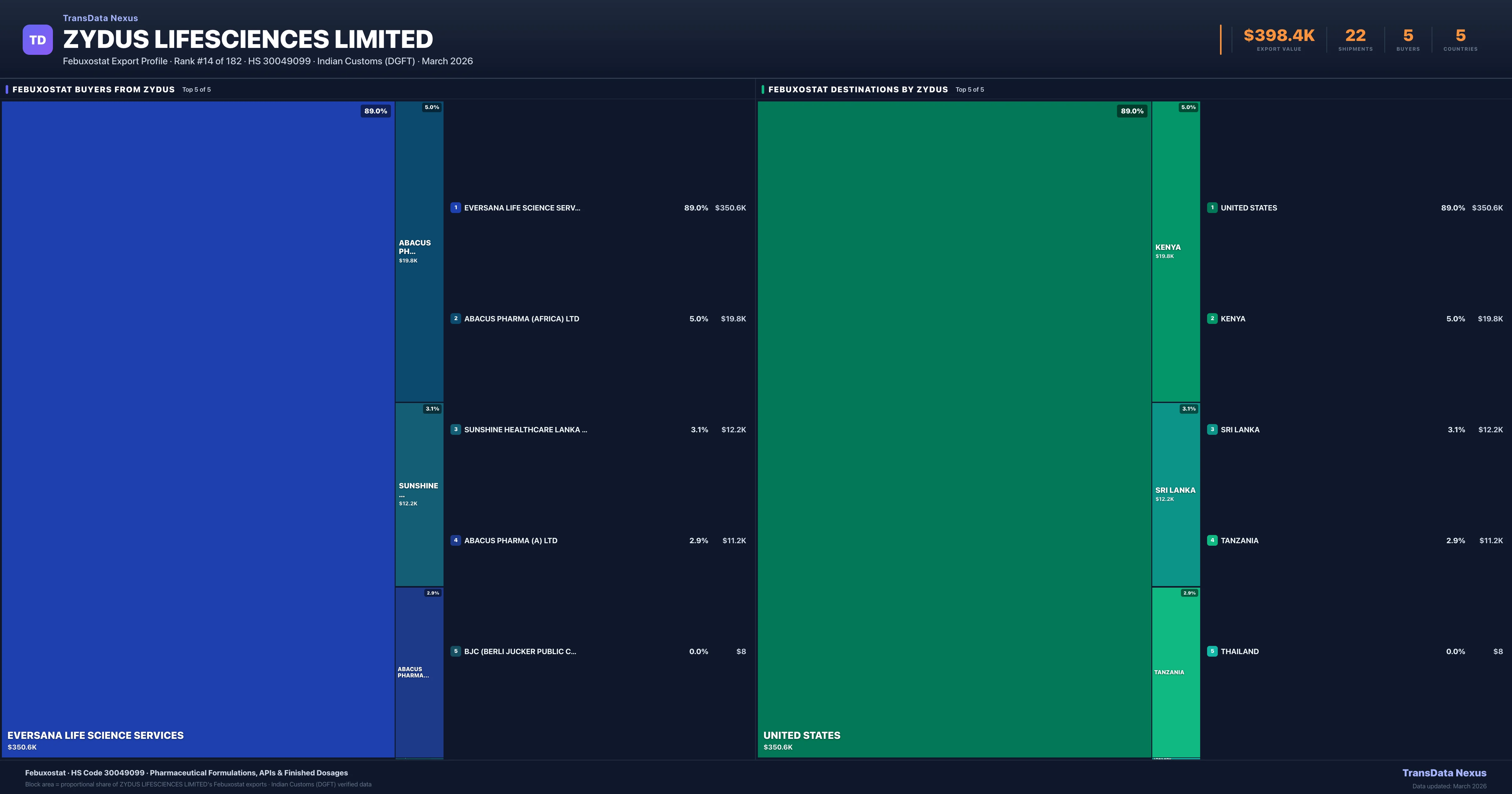 Zydus Lifesciences Limited β Febuxostat Export Profile: Buyers & Destinations