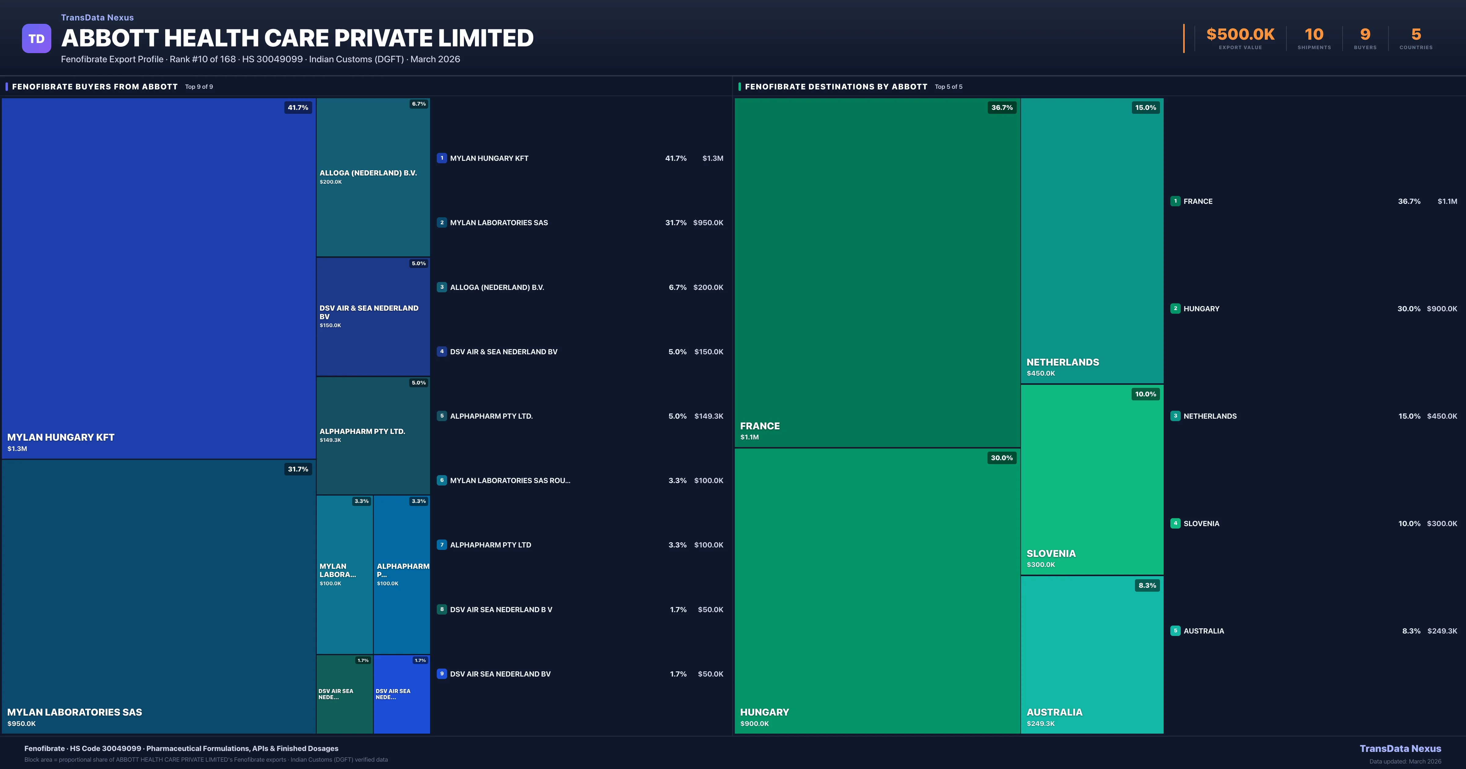 Abbott Health Care Private Limited — Fenofibrate Export Profile: Buyers & Destinations