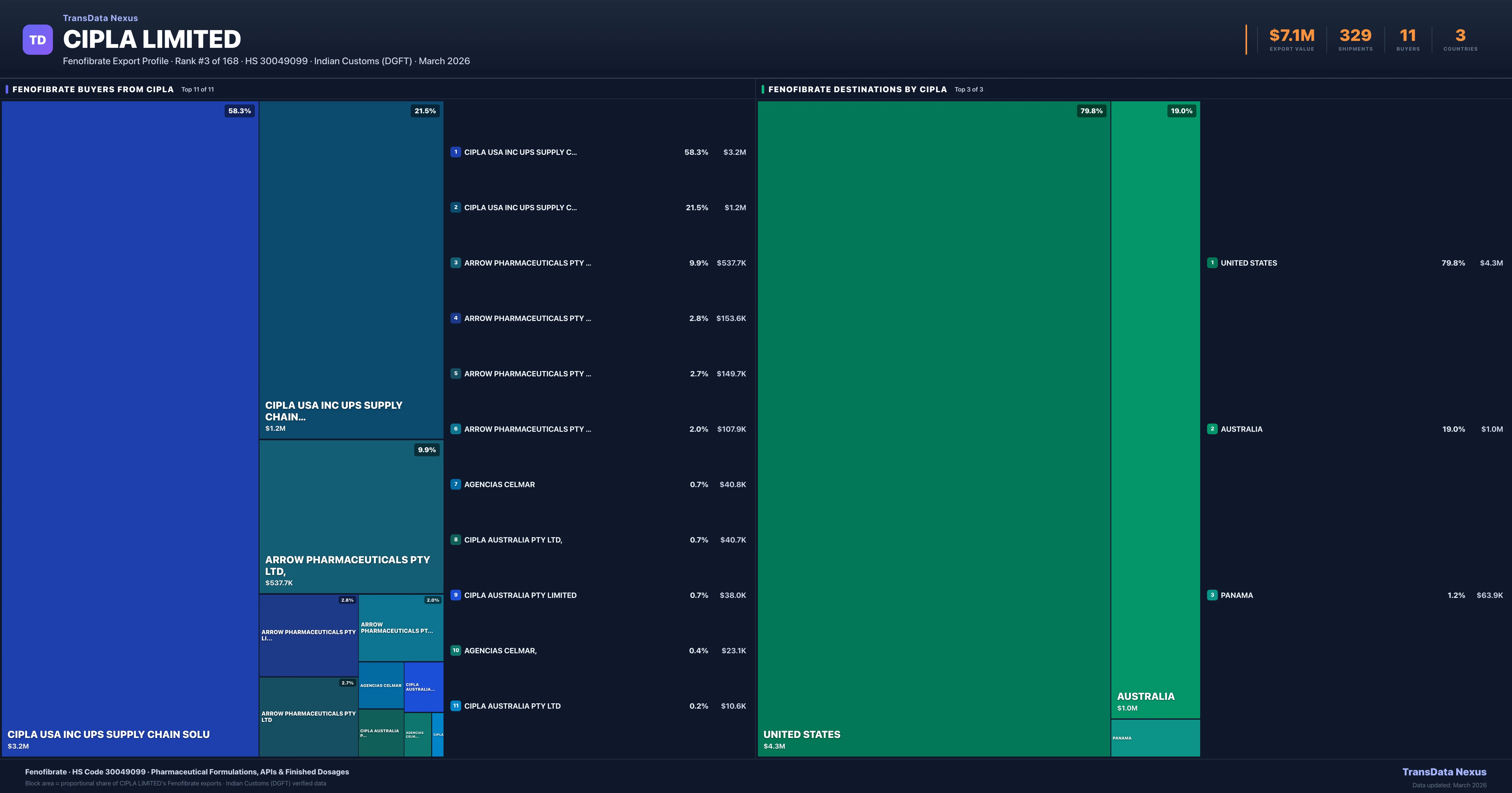 Cipla Limited — Fenofibrate Export Profile: Buyers & Destinations