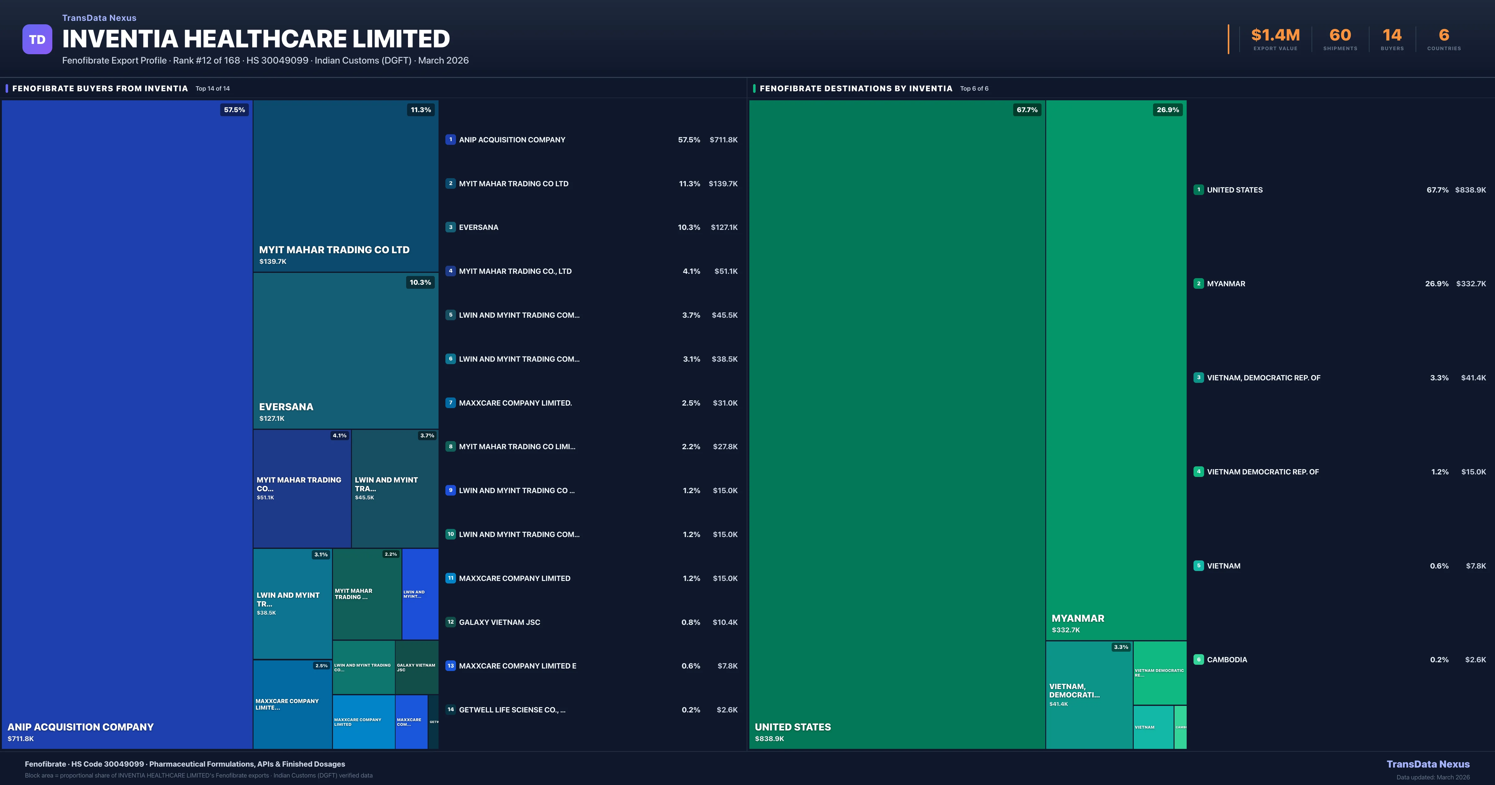 Inventia Healthcare Limited — Fenofibrate Export Profile: Buyers & Destinations