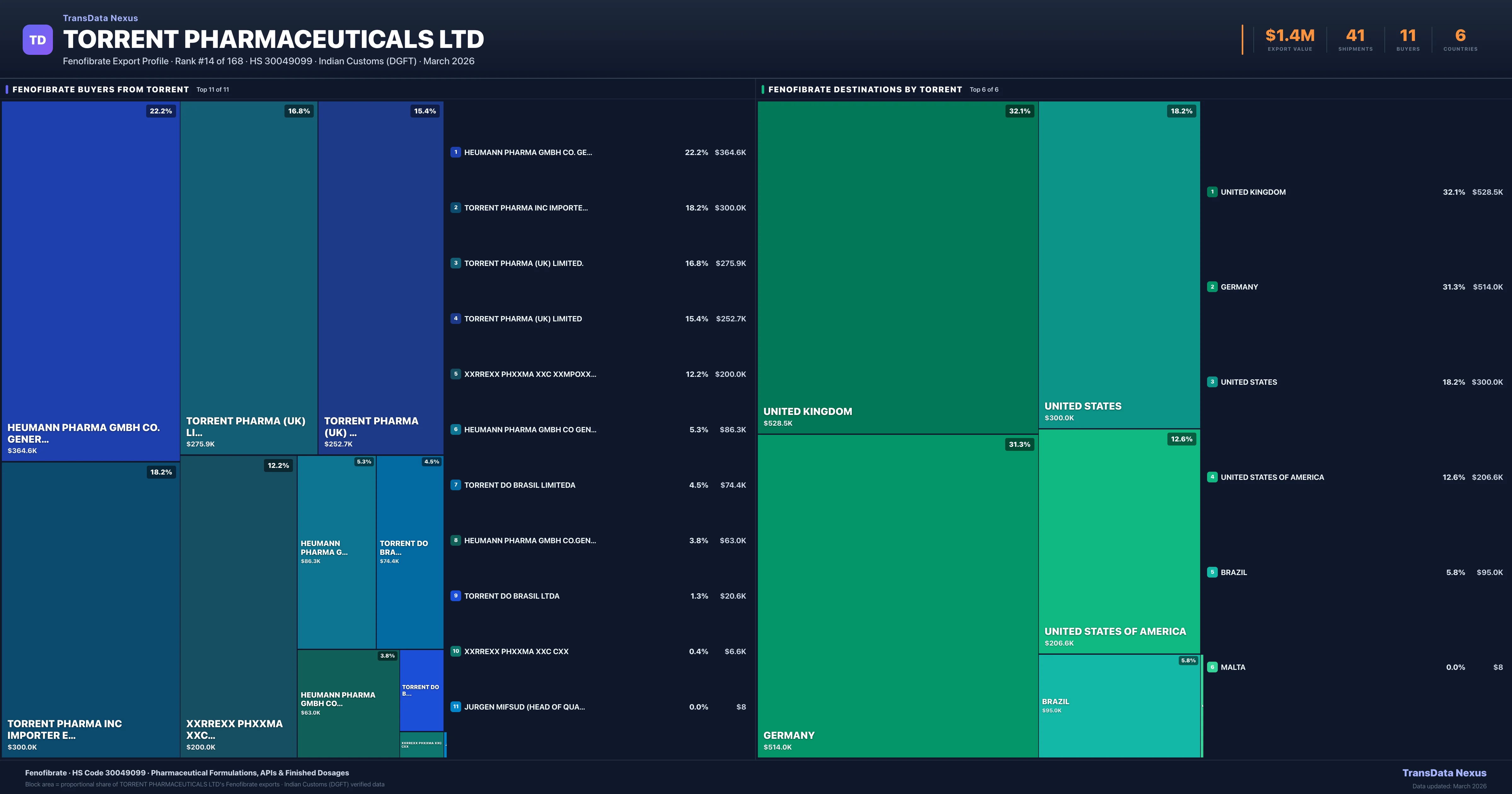 Torrent Pharmaceuticals Ltd β Fenofibrate Export Profile: Buyers & Destinations