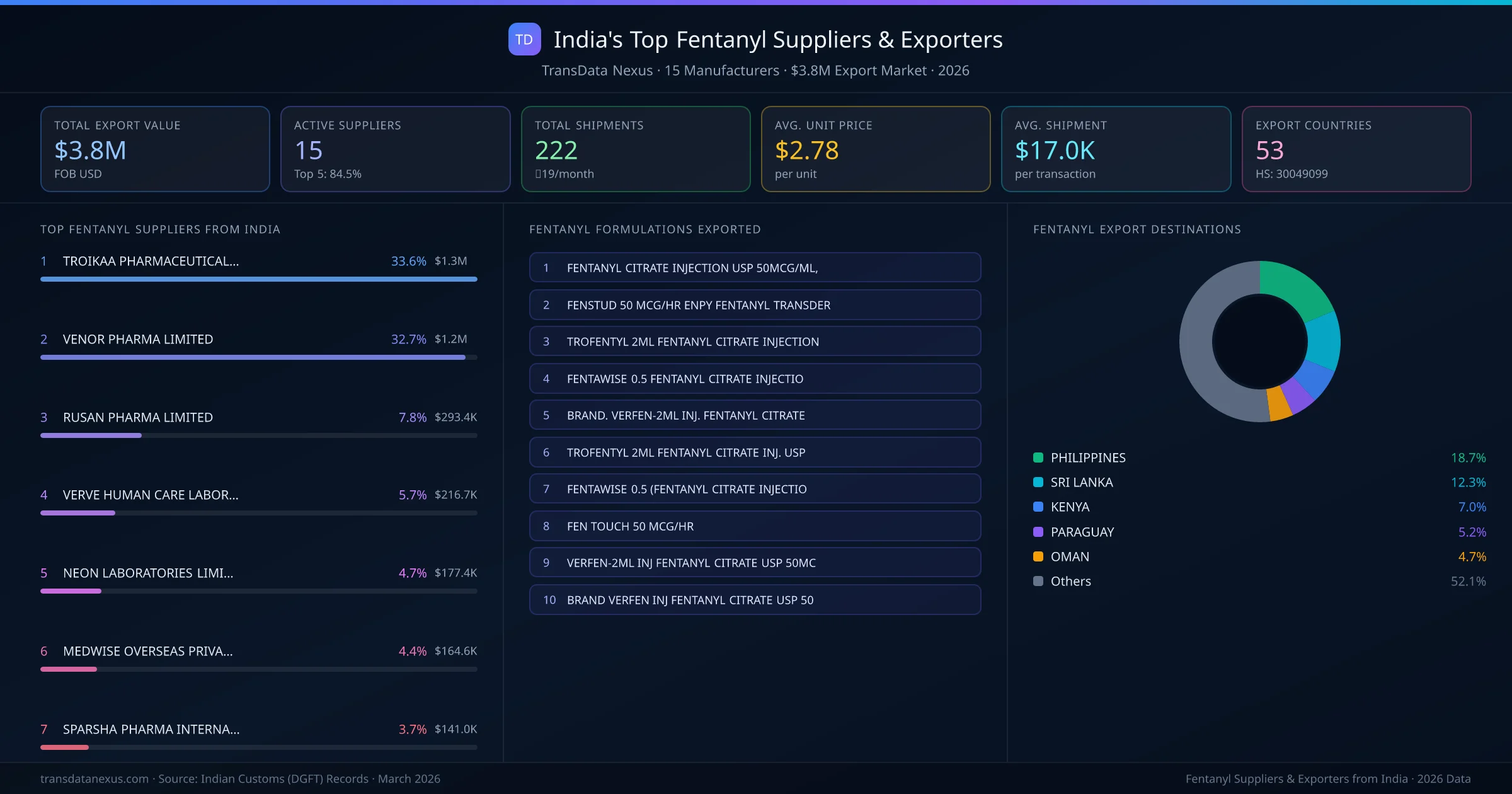 Who Exports Fentanyl from India โ 15 Suppliers Behind a $3.8M Market