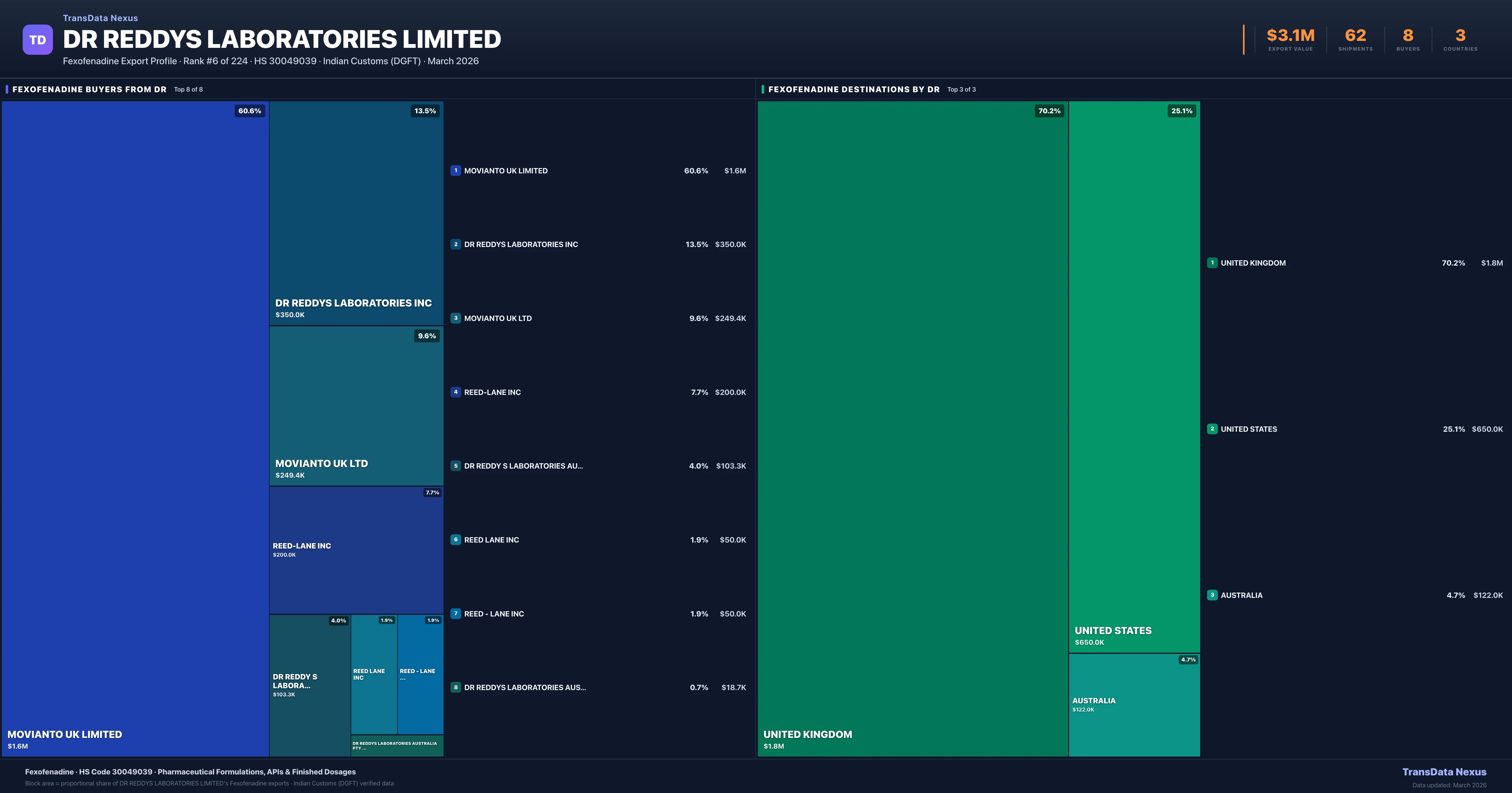DR Reddys Laboratories Limited โ Fexofenadine Export Profile: Buyers & Destinations