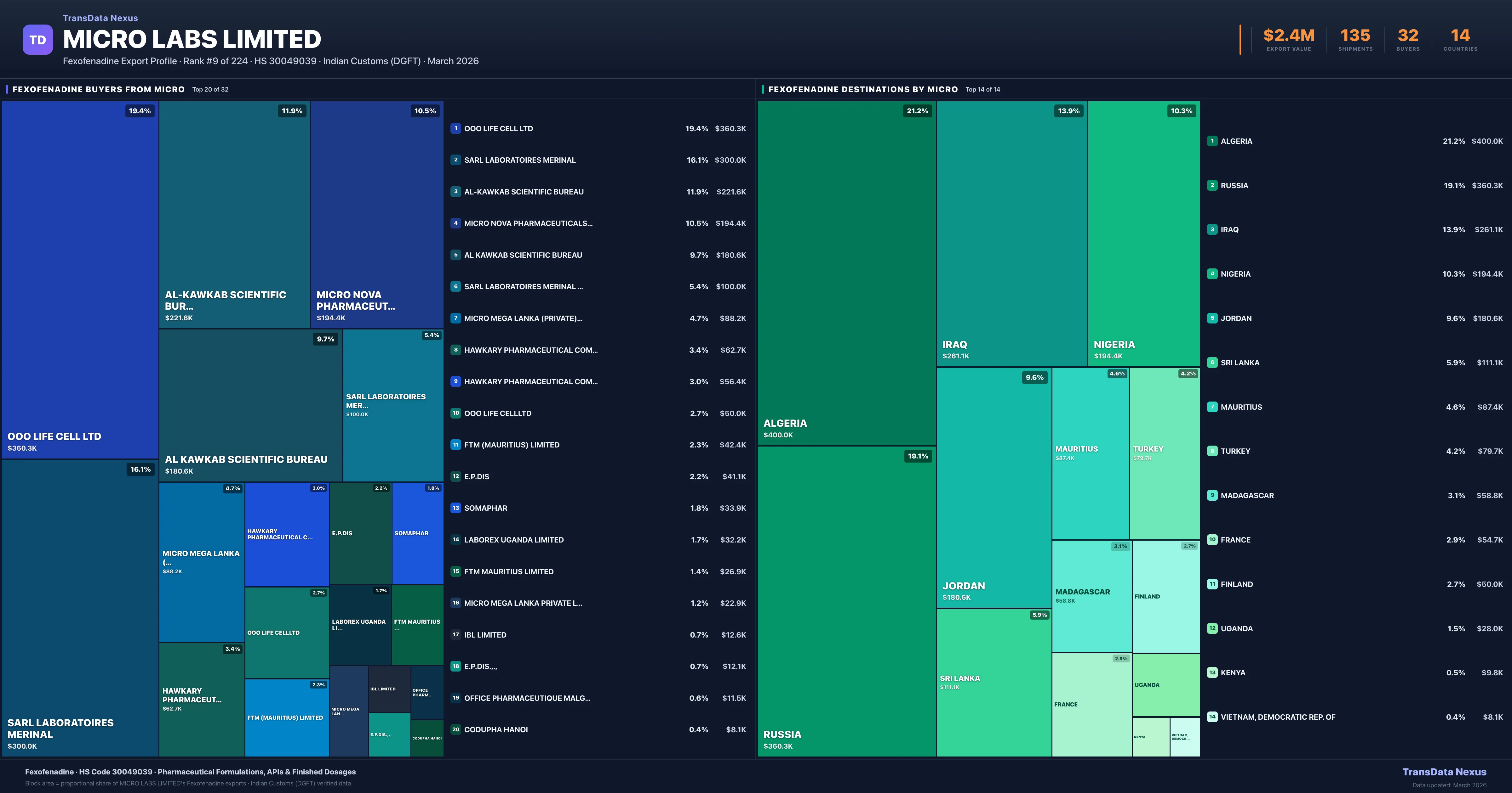 Micro Labs Limited — Fexofenadine Export Profile: Buyers & Destinations