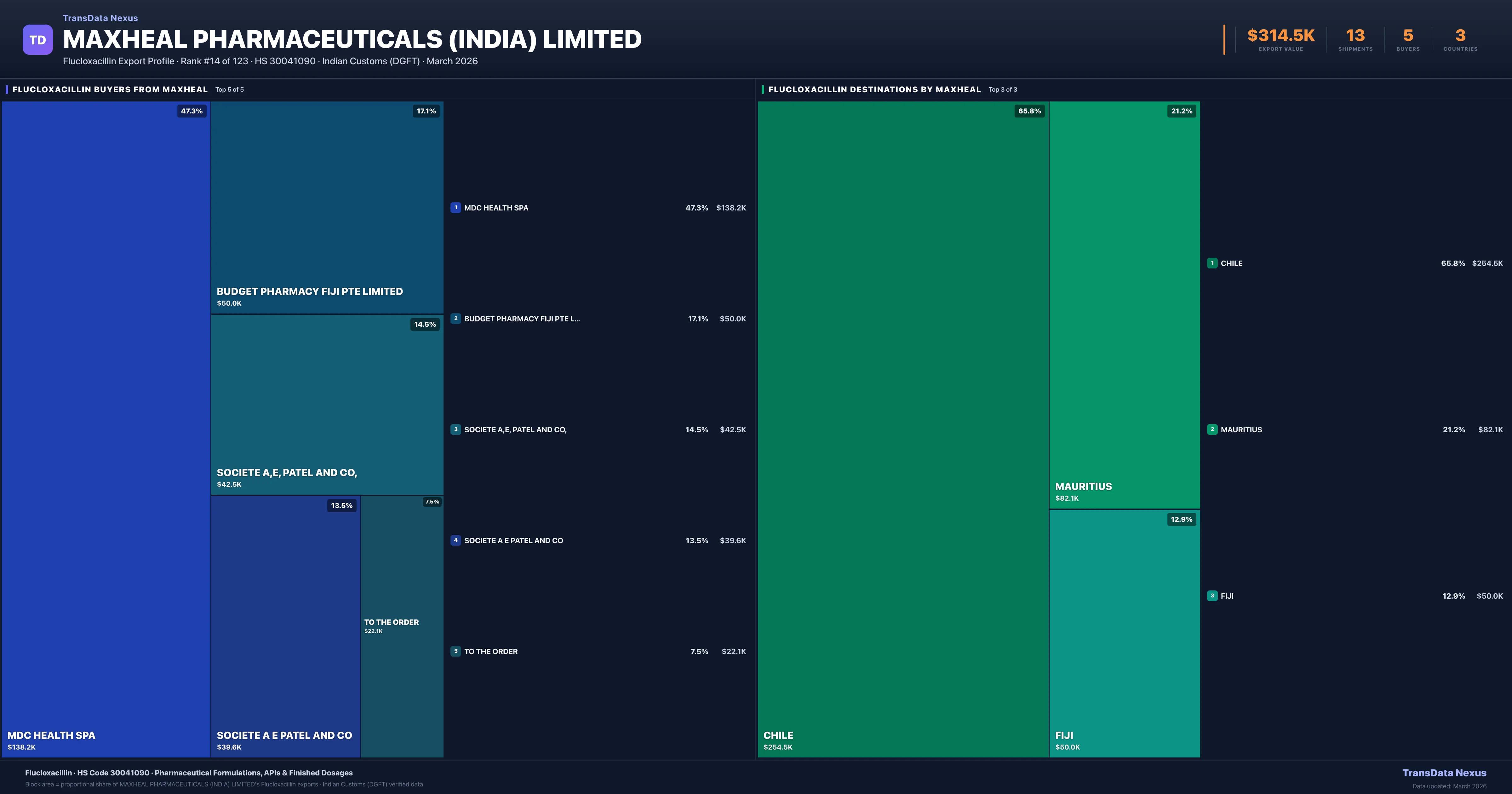 Maxheal Pharmaceuticals (india) Limited — Flucloxacillin Export Profile: Buyers & Destinations