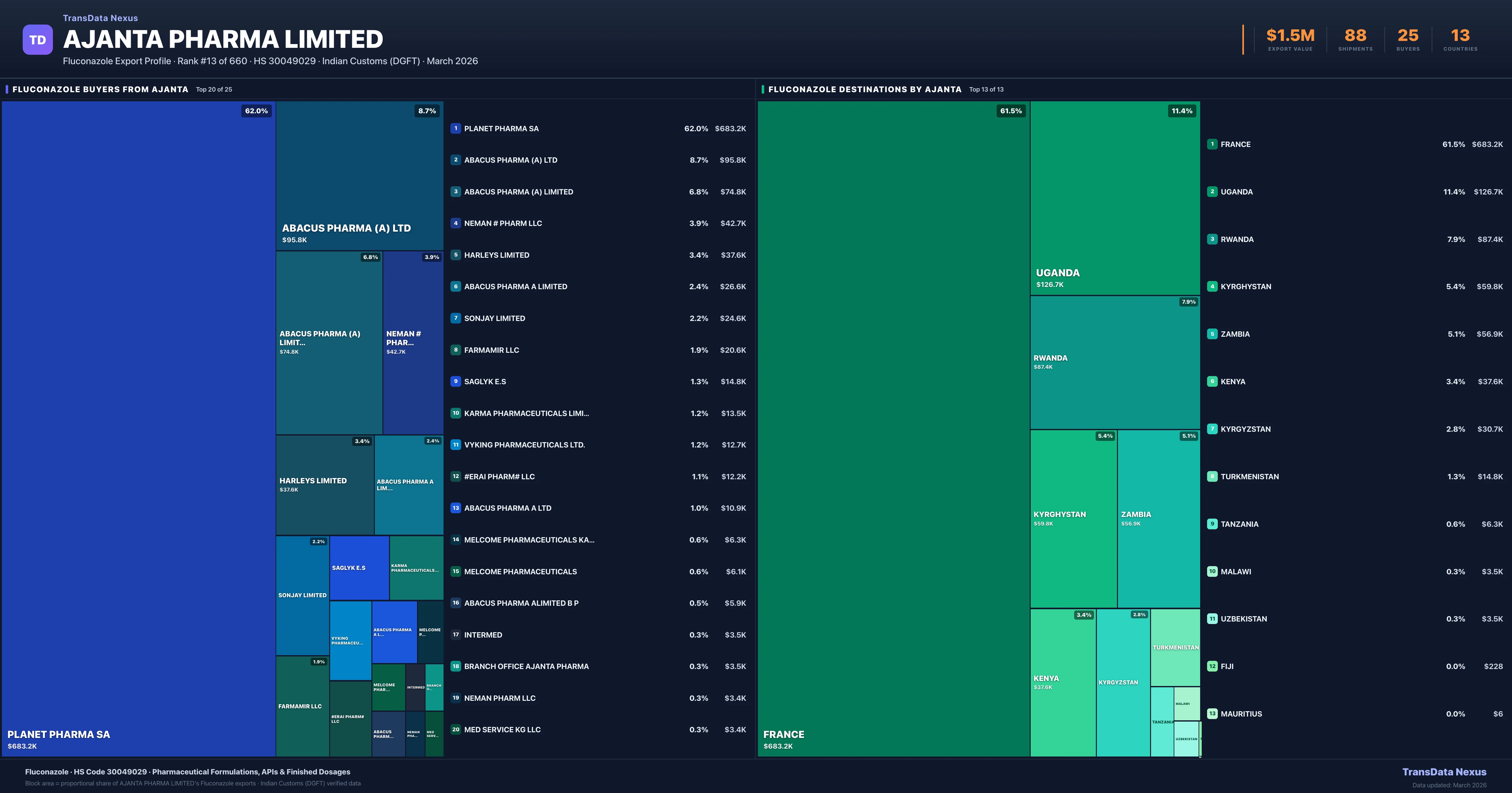 Ajanta Pharma Limited — Fluconazole Export Profile: Buyers & Destinations