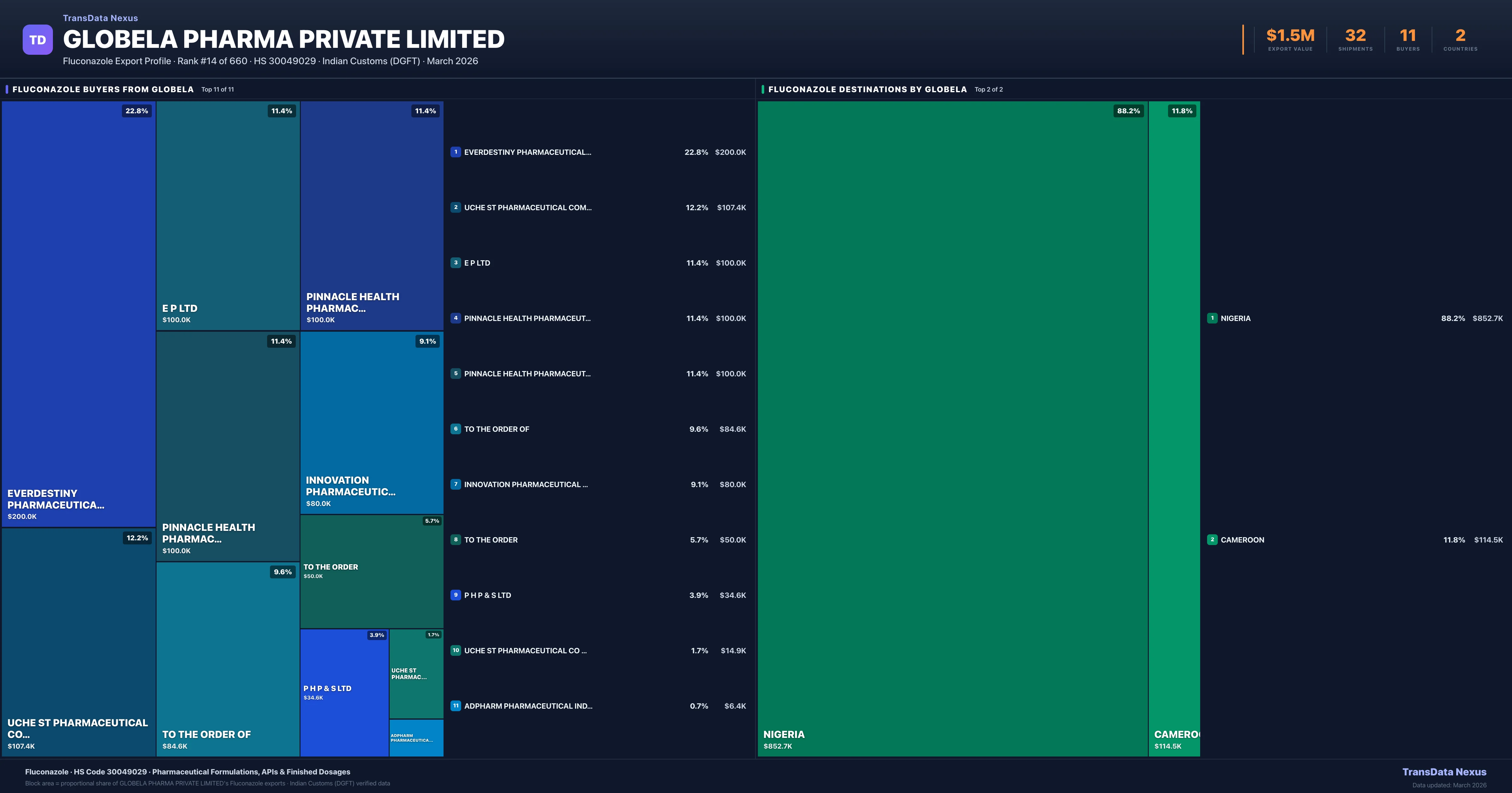 Globela Pharma Private Limited — Fluconazole Export Profile: Buyers & Destinations