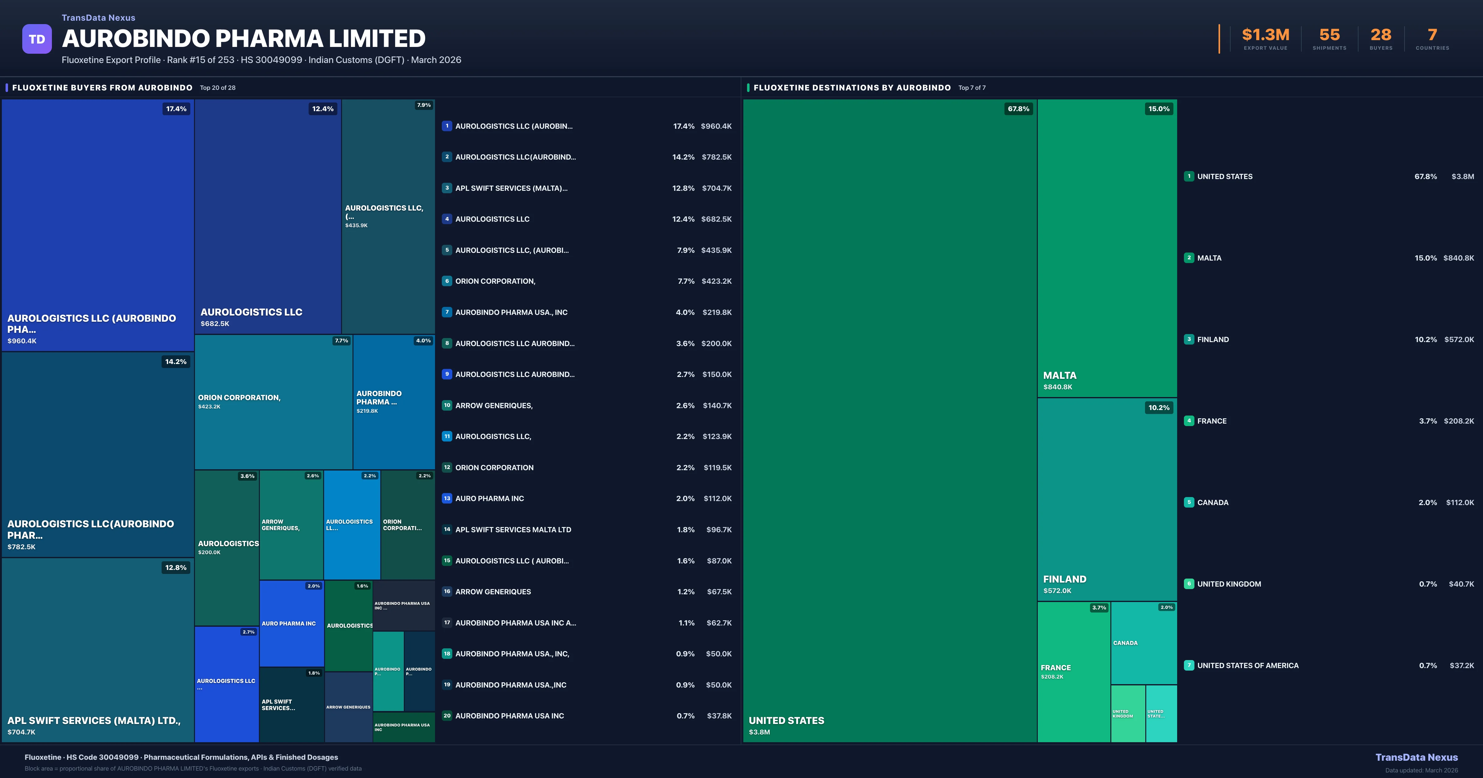 Aurobindo Pharma Limited — Fluoxetine Export Profile: Buyers & Destinations