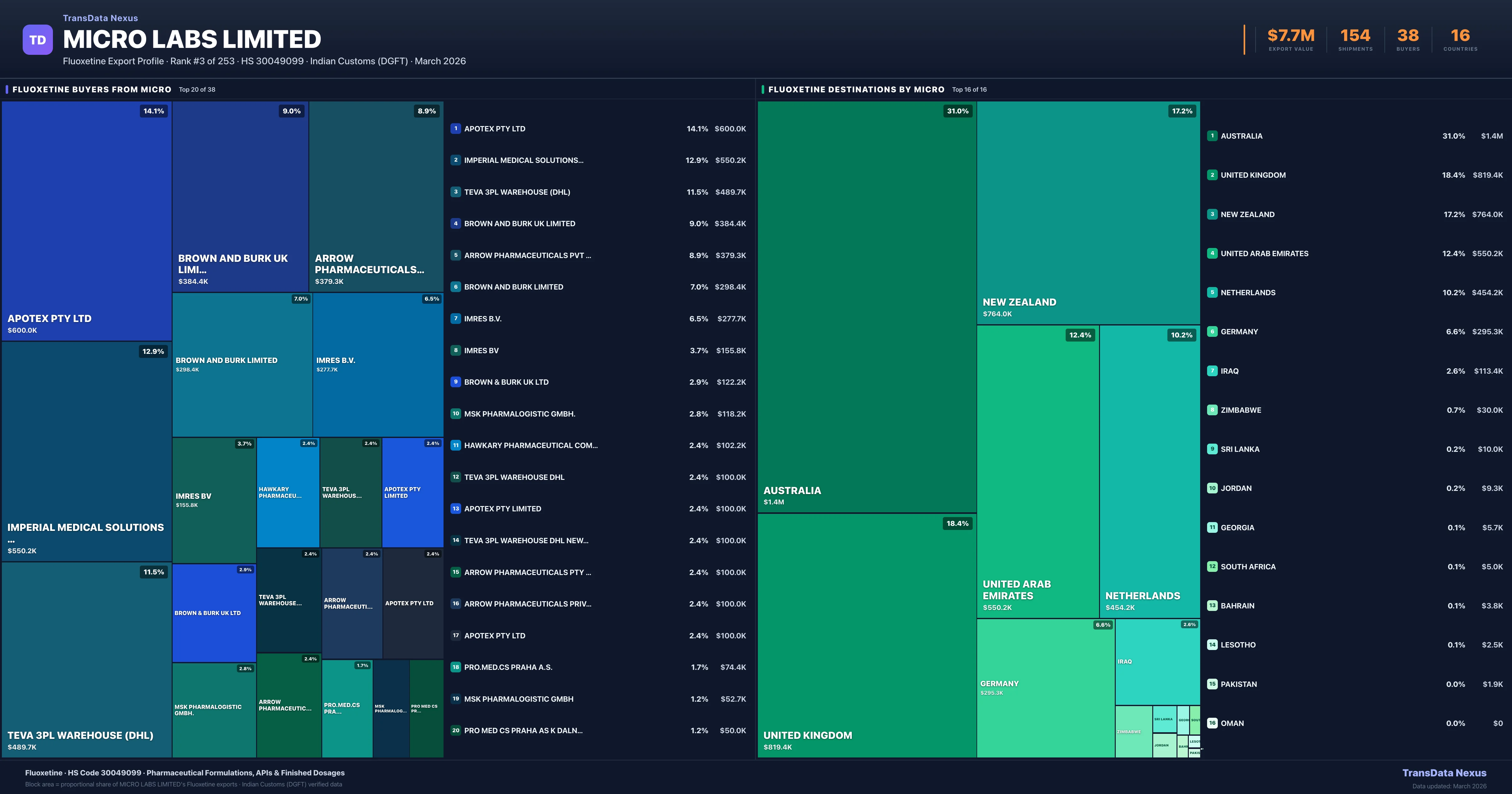 Micro Labs Limited — Fluoxetine Export Profile: Buyers & Destinations