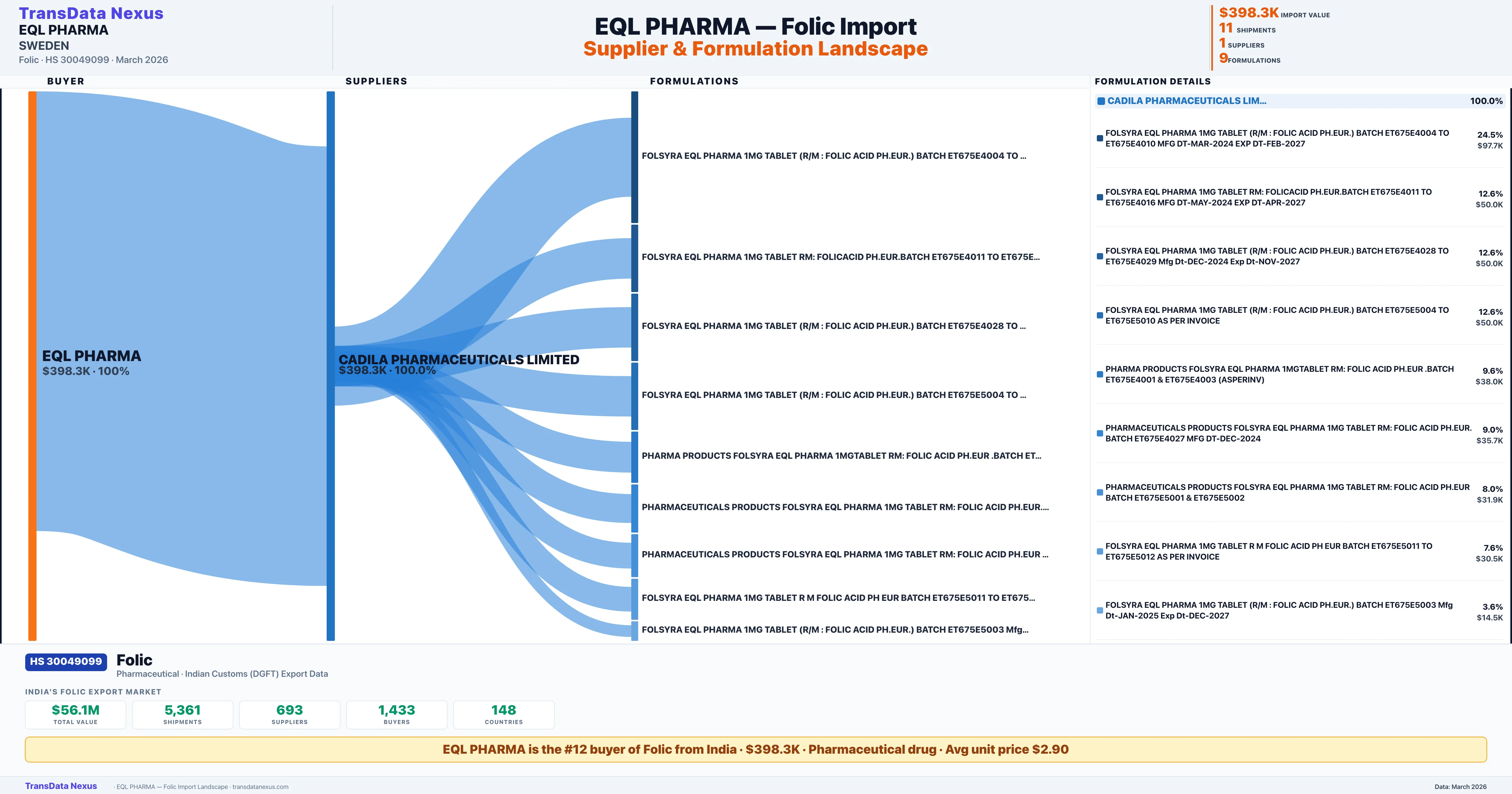 EQL PHARMA β Folic Import Profile: Suppliers, Formulations & Sources