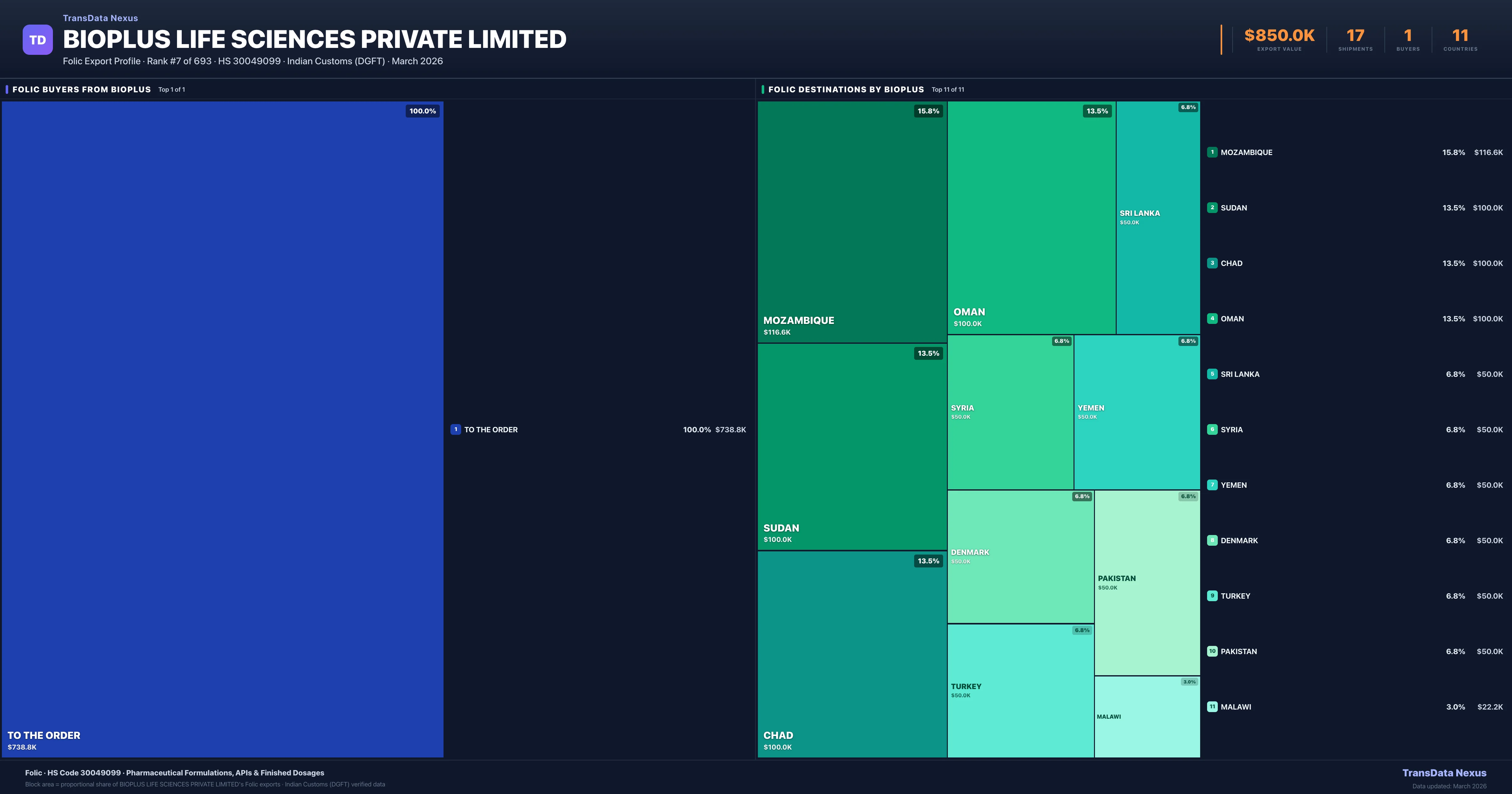 Bioplus Life Sciences Private Limited — Folic Export Profile: Buyers & Destinations