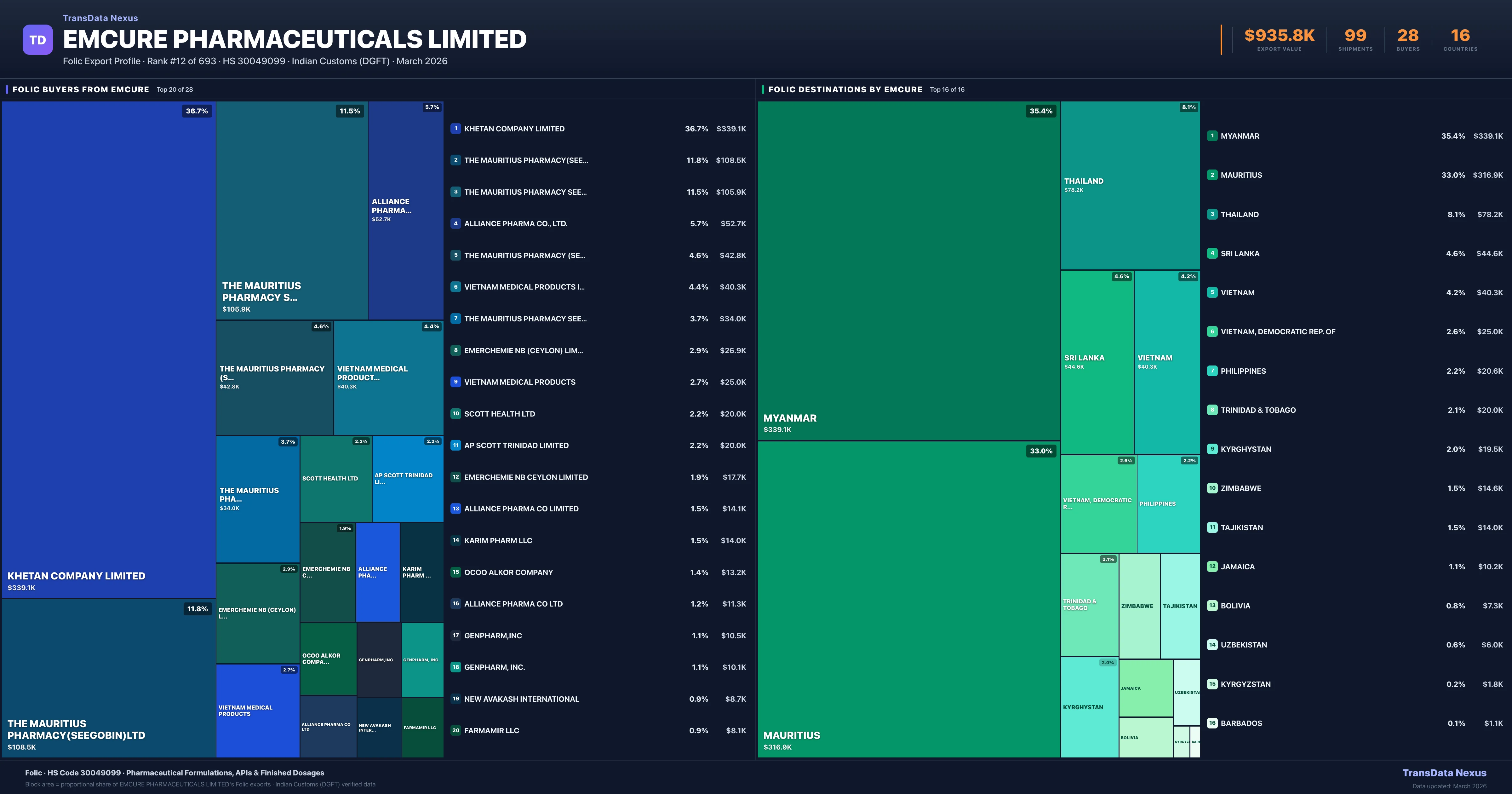 Emcure Pharmaceuticals Limited — Folic Export Profile: Buyers & Destinations