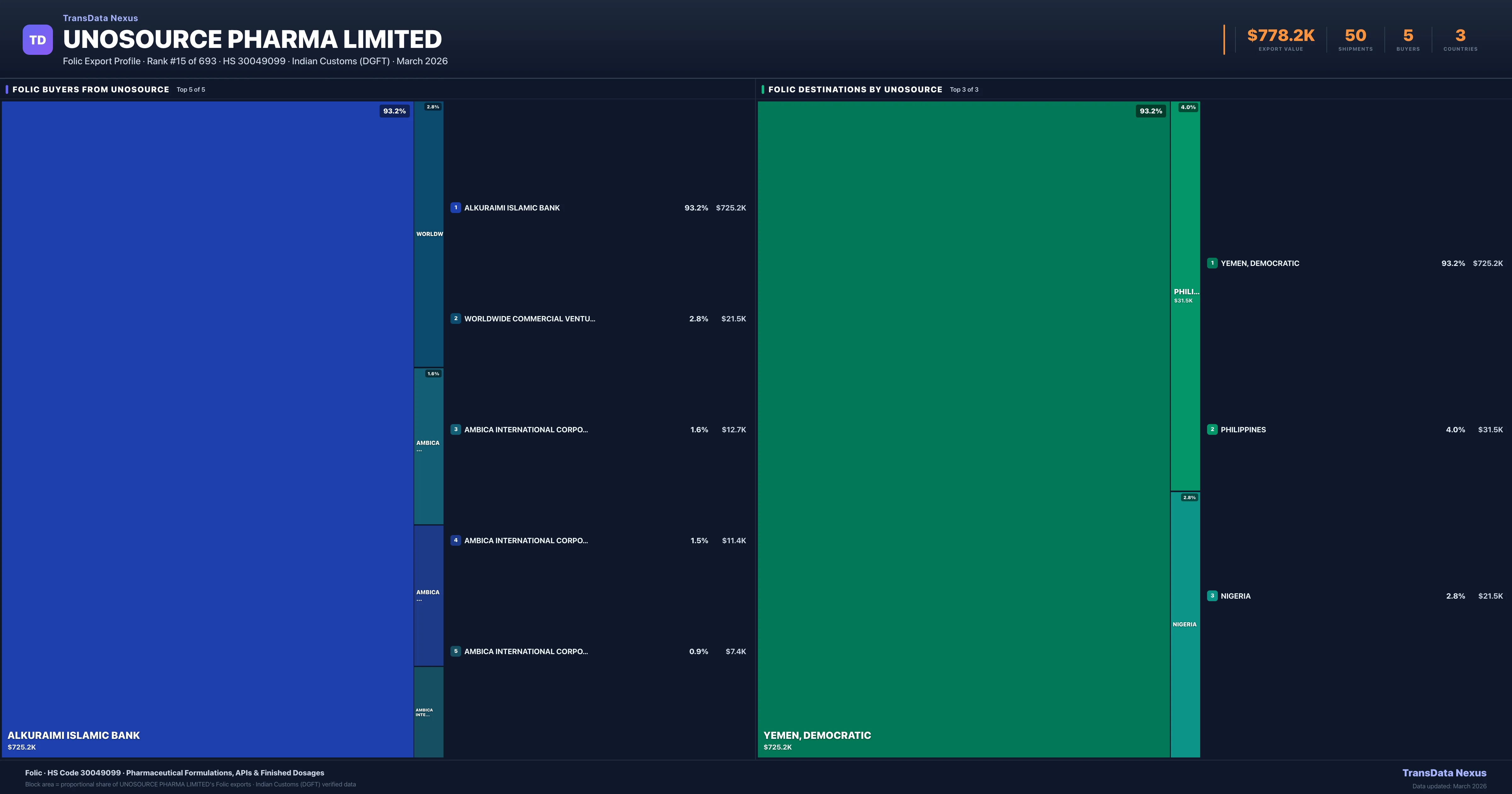 Unosource Pharma Limited — Folic Export Profile: Buyers & Destinations