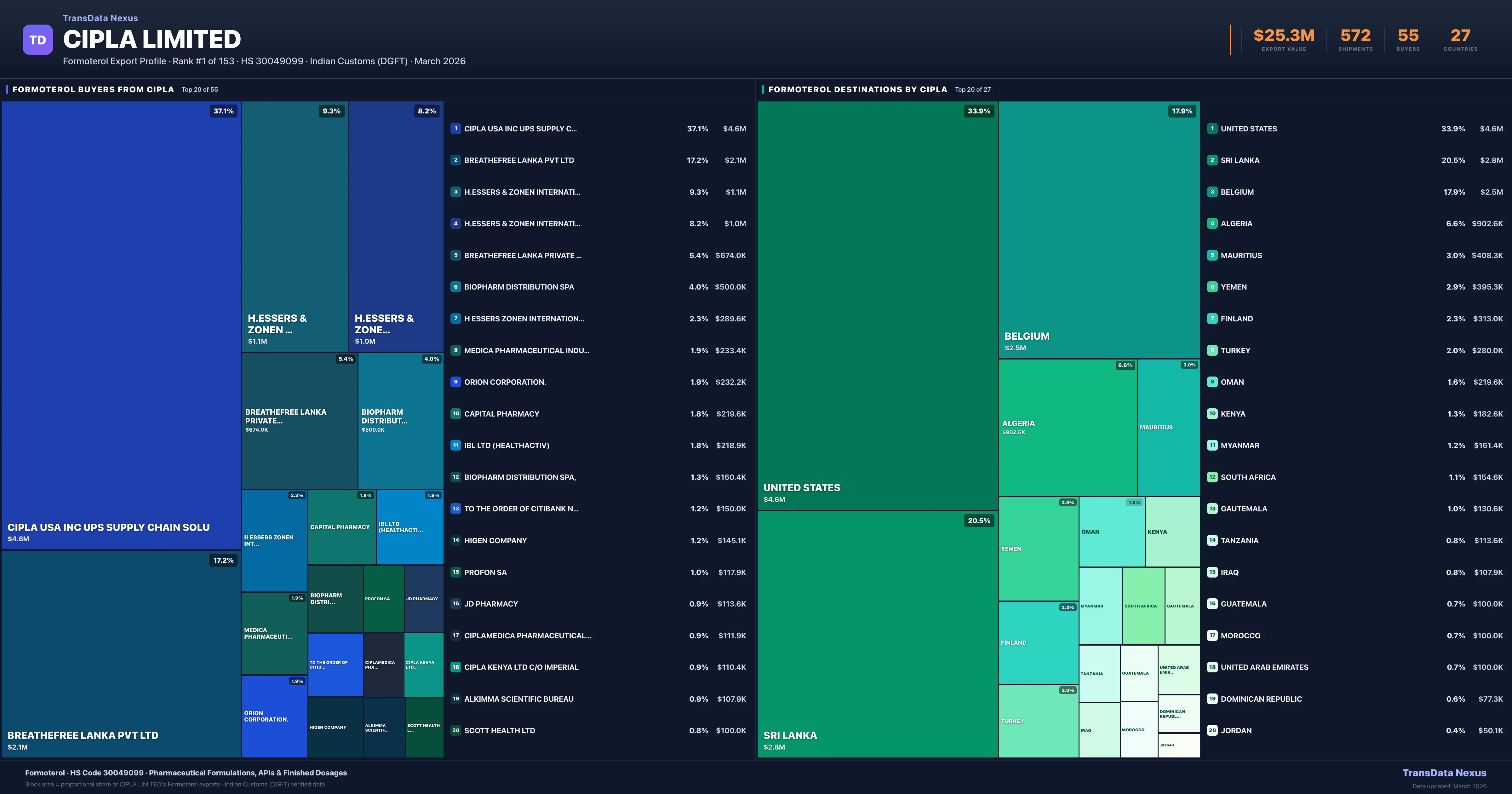 Cipla Limited — Formoterol Export Profile: Buyers & Destinations