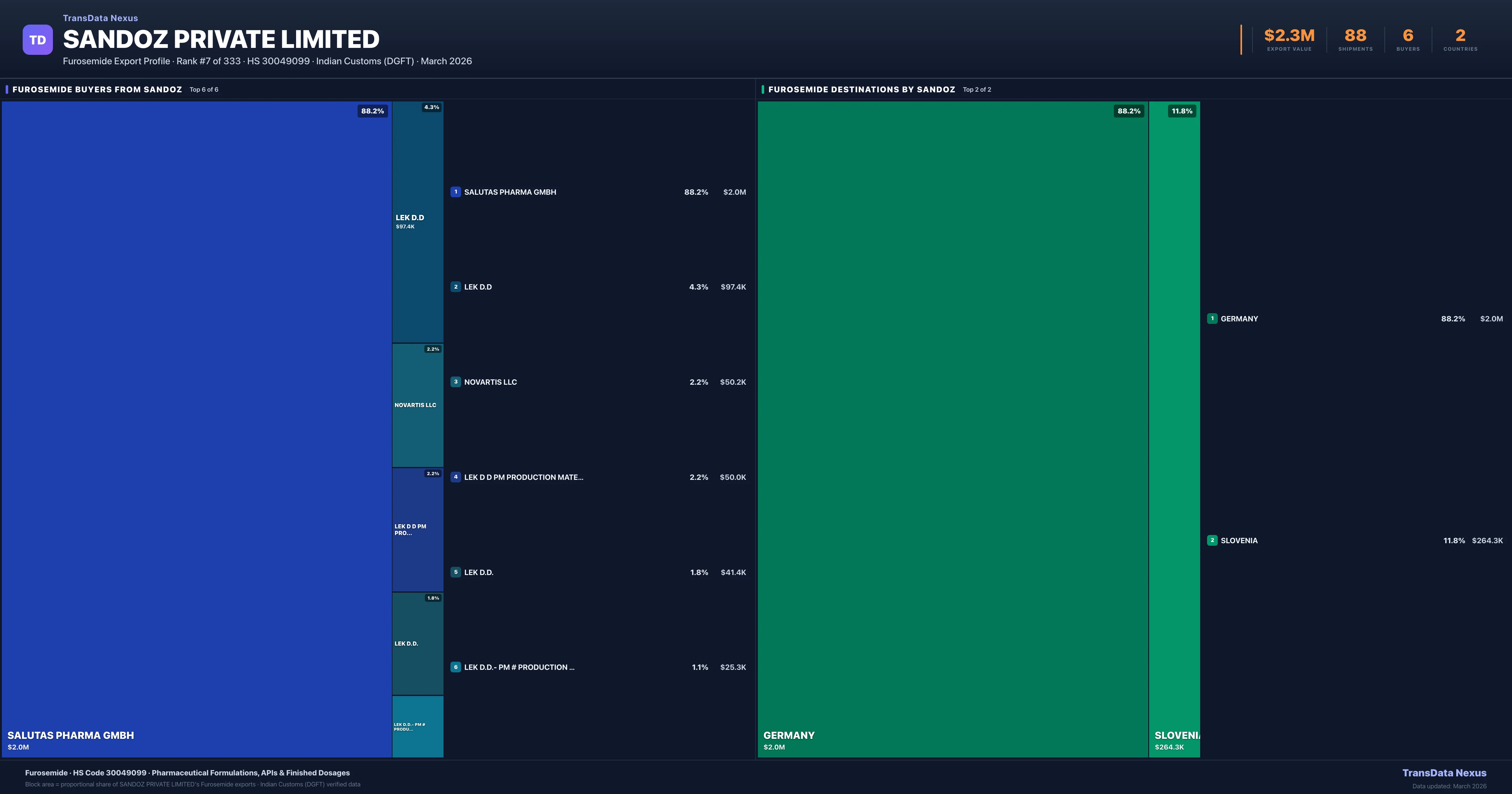Sandoz Private Limited — Furosemide Export Profile: Buyers & Destinations