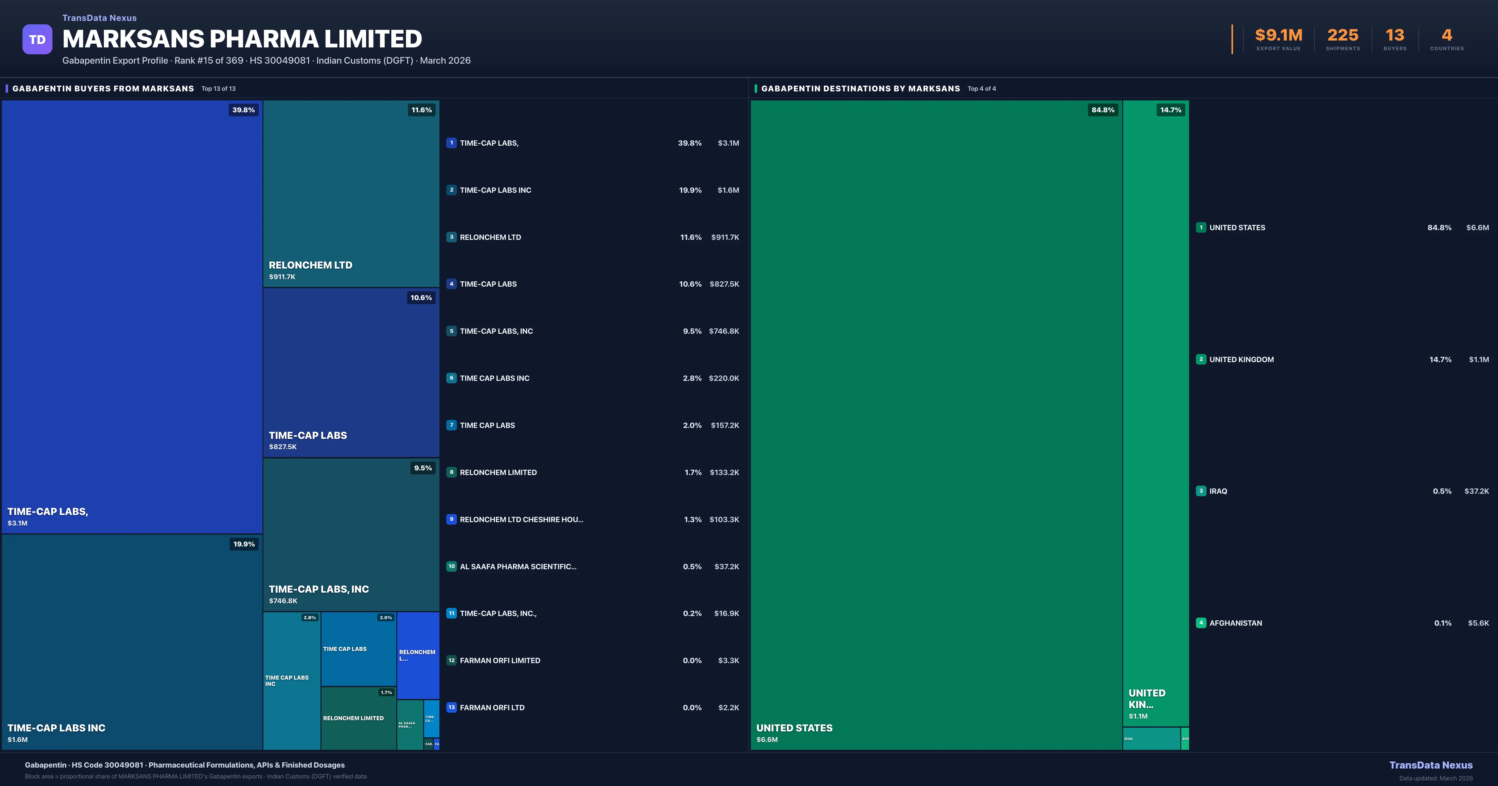 Marksans Pharma Limited — Gabapentin Export Profile: Buyers & Destinations