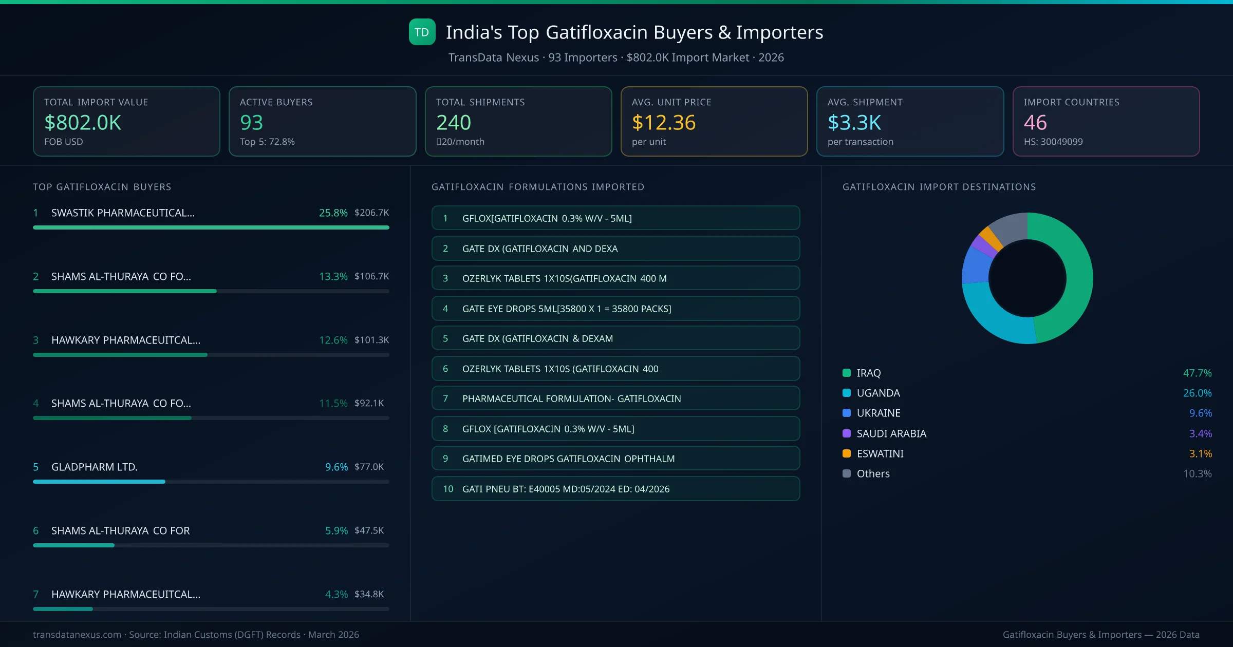 Who Buys Gatifloxacin from India — 93 Importers Behind a $802.0K Market