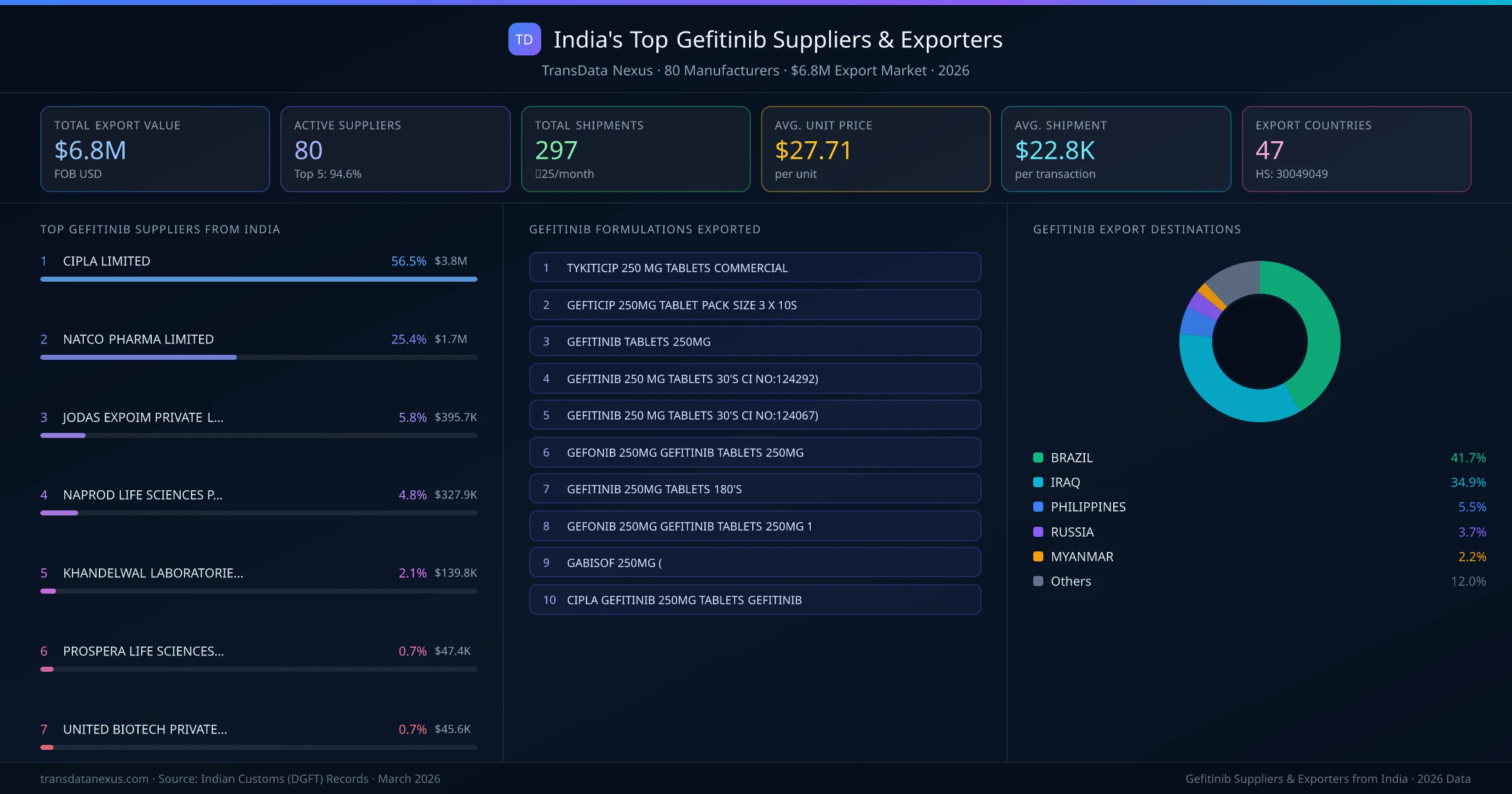 Who Exports Gefitinib from India — 80 Suppliers Behind a $6.8M Market