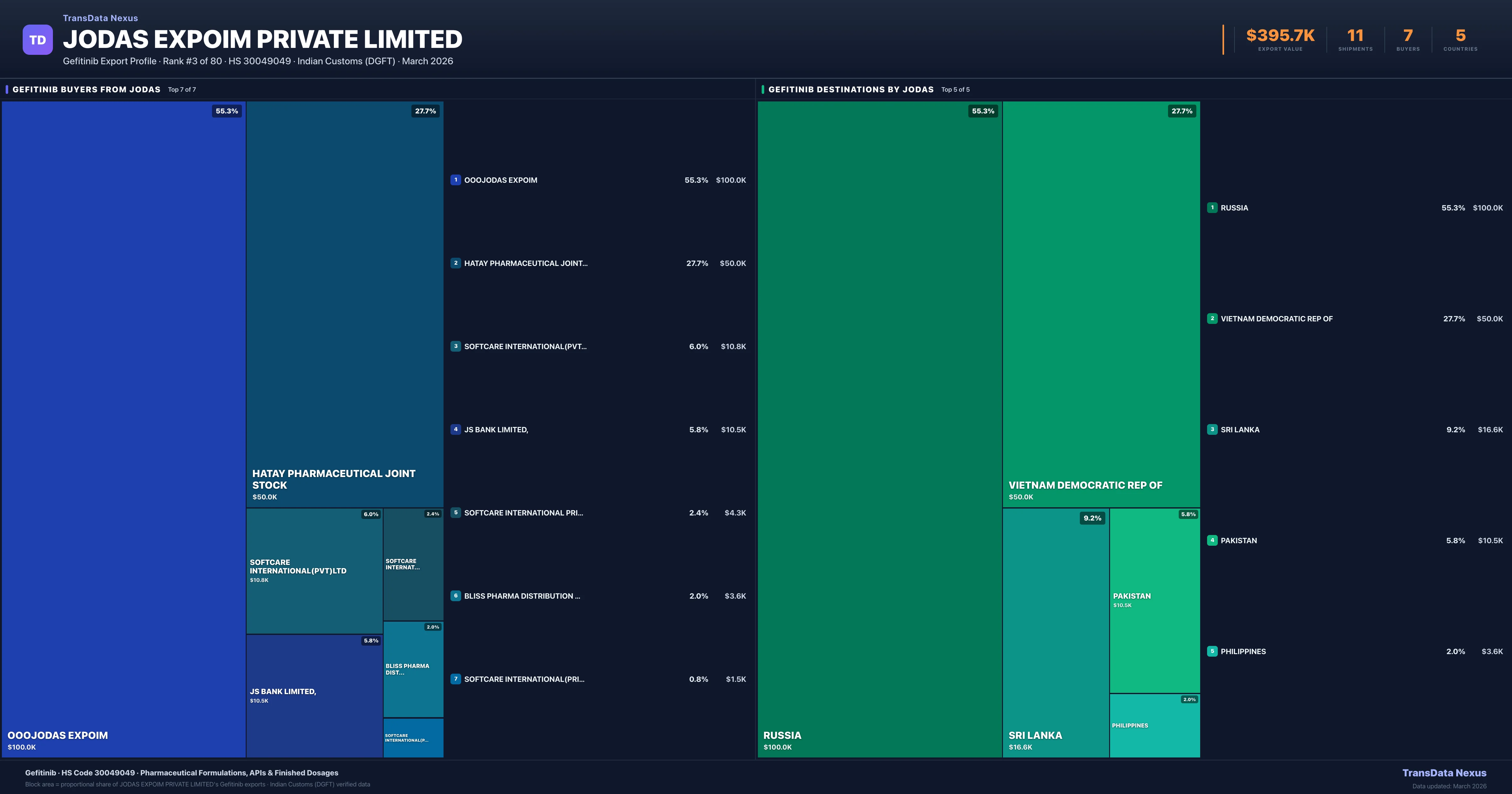 Jodas Expoim Private Limited — Gefitinib Export Profile: Buyers & Destinations