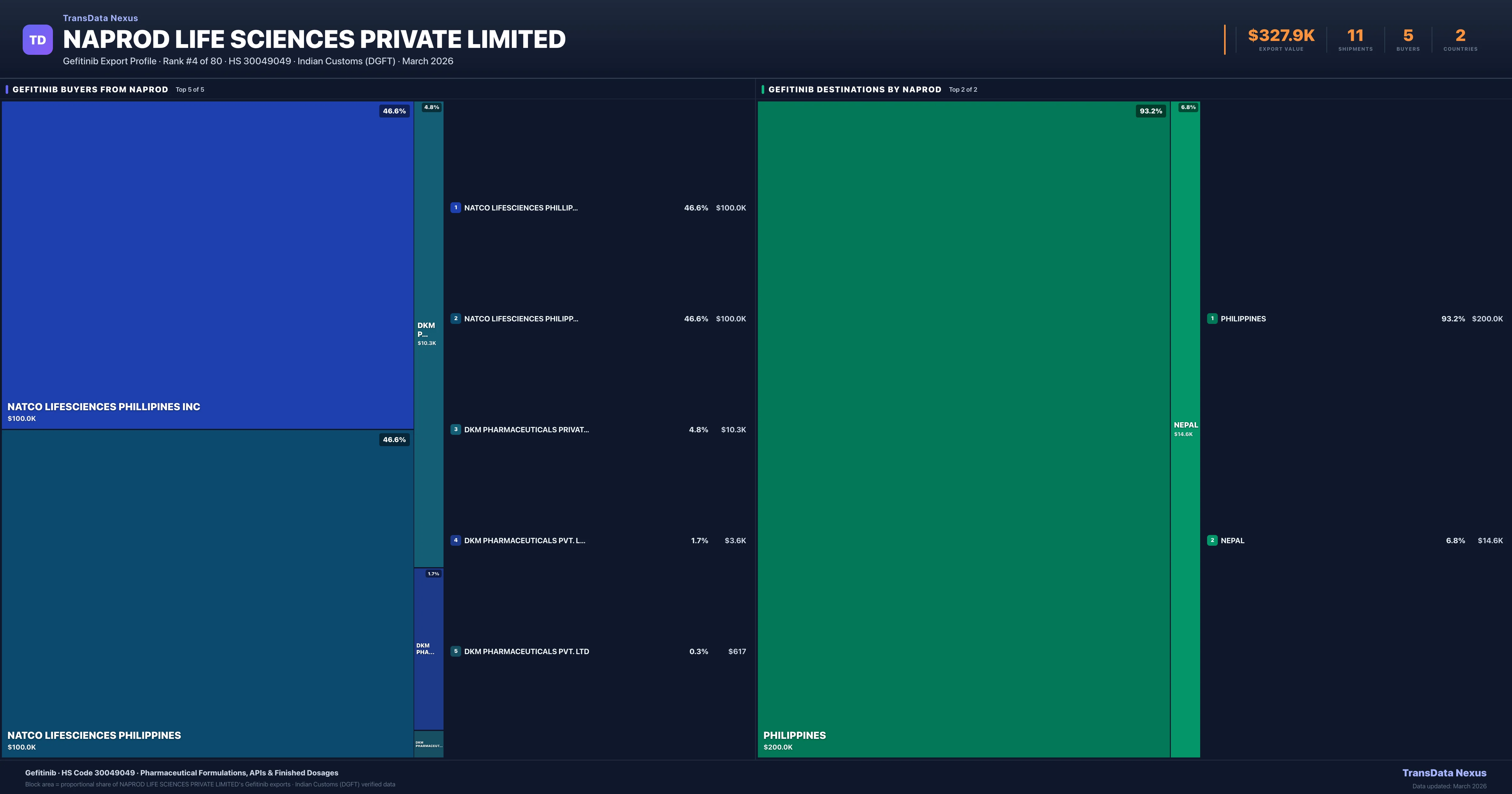 Naprod Life Sciences Private Limited — Gefitinib Export Profile: Buyers & Destinations